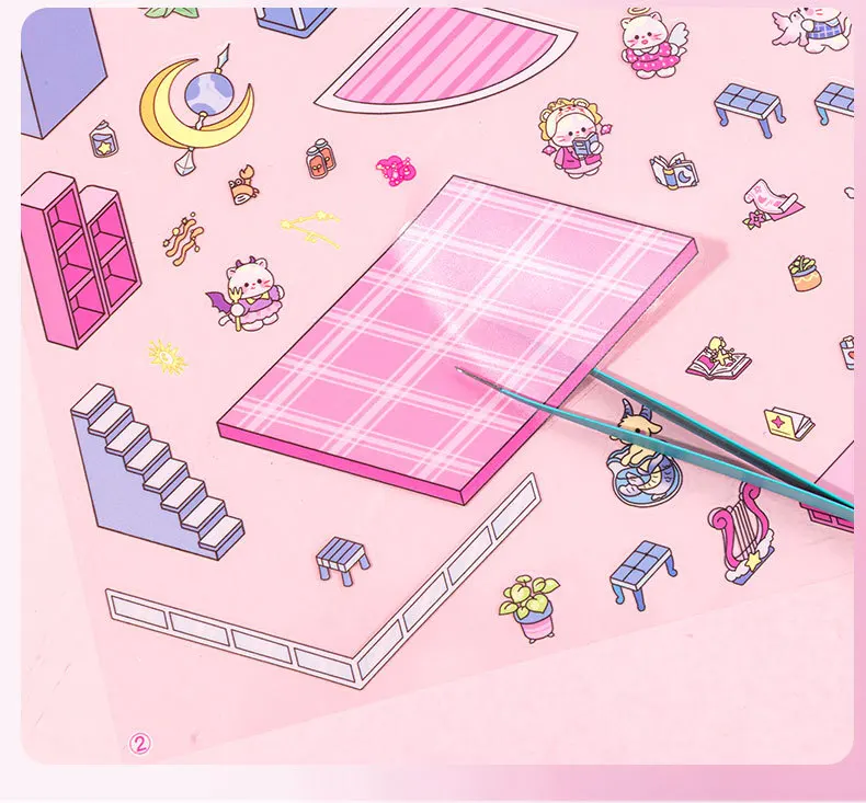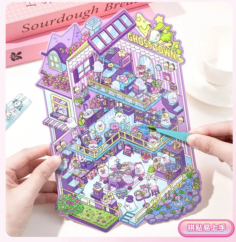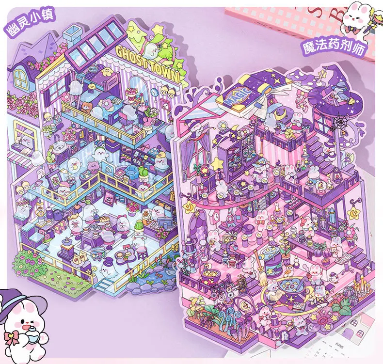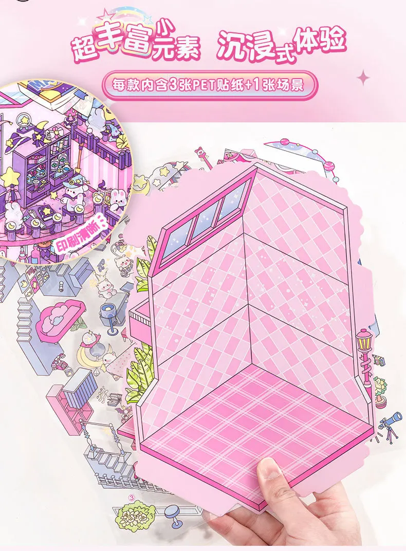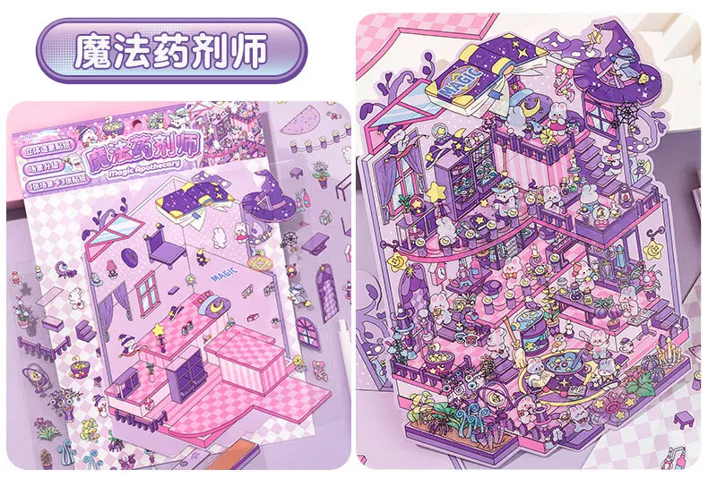 Tallas grandes 2.5D Castillo de dibujos animados ciudad paisaje pegatina escena DIY juego pegatina Festival regalo de cumpleaños para