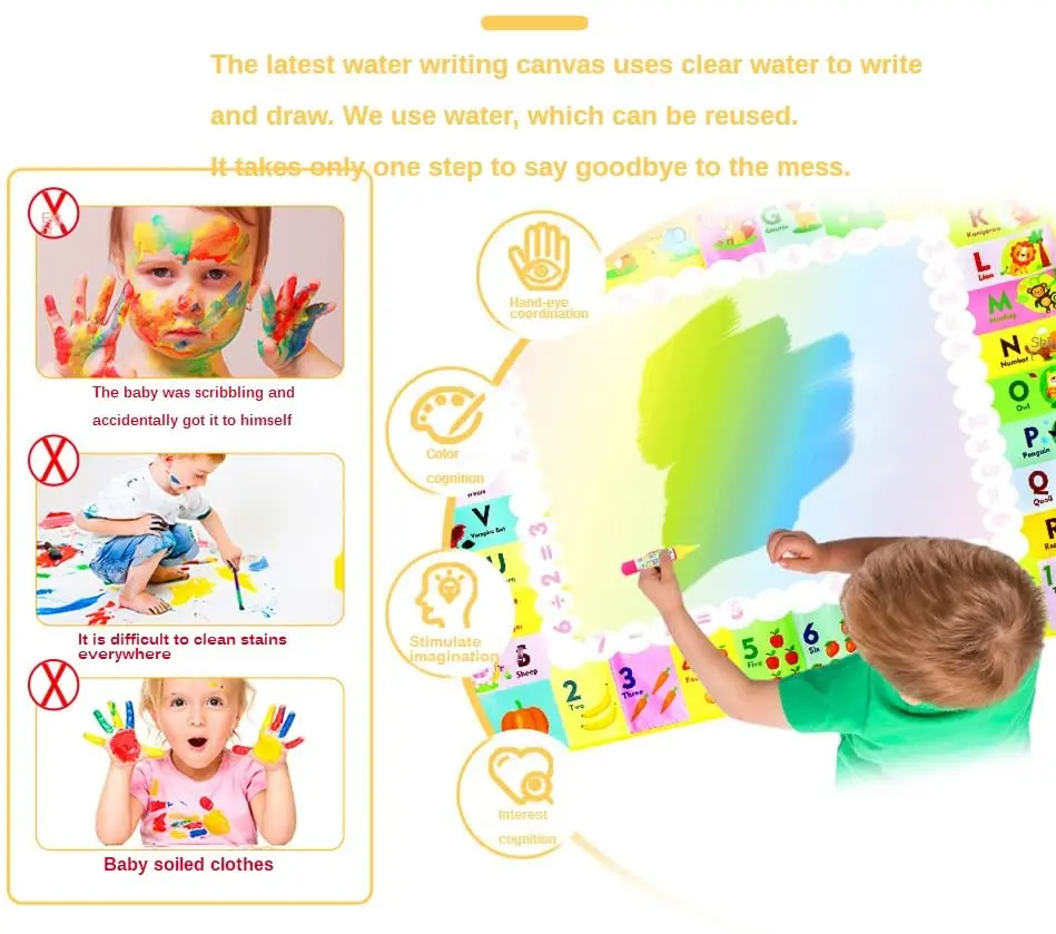 【Herramientas educativas】Este tapete de dibujo ayuda a encontrar una forma creativa de desarrollar habilidades de escritura y pintura.También ayuda a mejorar la creatividad y la imaginación de los niños, ejercita la coordinación ojo-mano y la capacidad de percepción del color.
