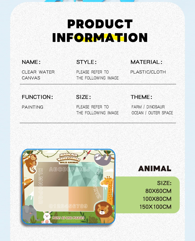 Juguetes educativos: sin tinta, sin pintura, no tóxicos, no contaminantes, nunca ensucien. La parte posterior de la alfombra es de nailon resistente al agua, limpio y seguro para los niños.Los rastros nunca serán caóticos, satisfaciendo la imaginación y la creatividad de la pintura infinita de los niños.