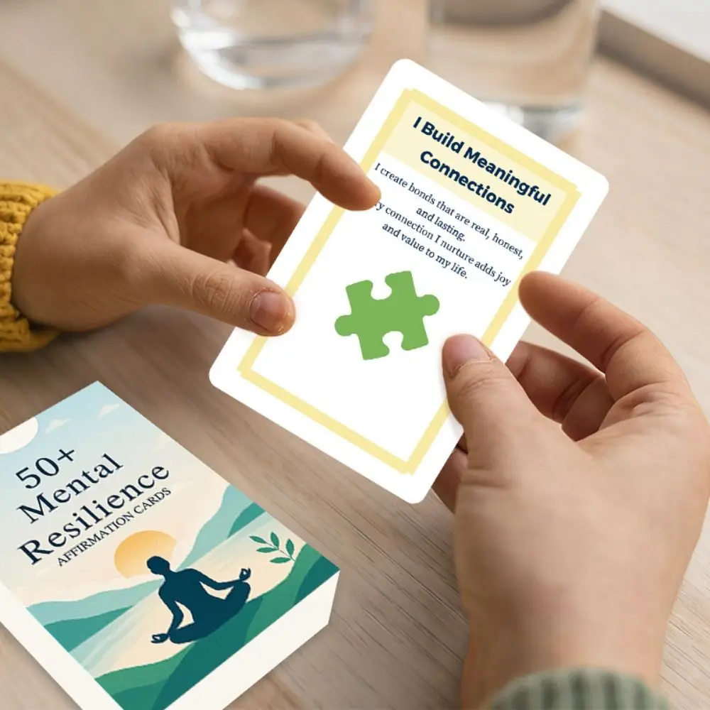 - STRESS RELIEF CARDS - 50 affirmation cards designed to reduce anxiety, promote mindfulness, and encourage daily positivity. Each card includes uplifting quotes and reflection prompts to support calm, clarity, and emotional resilience.
