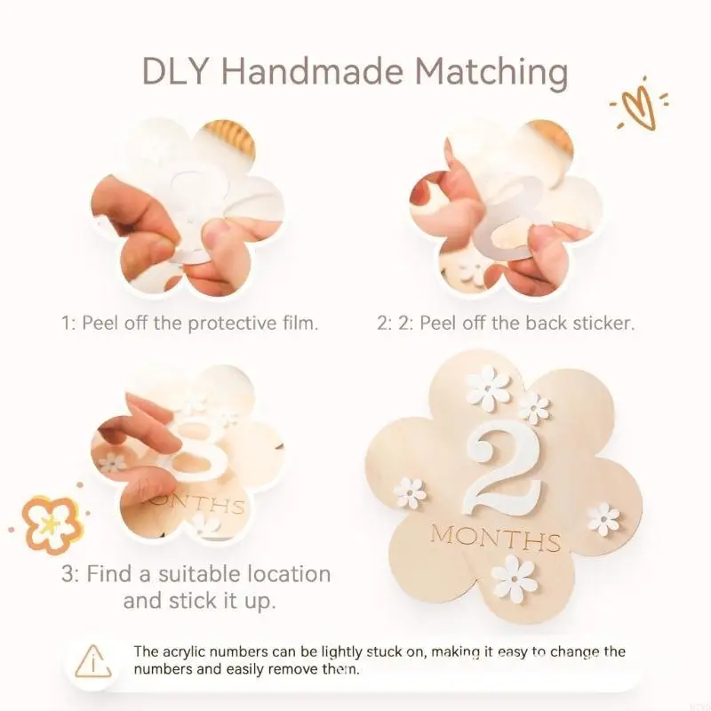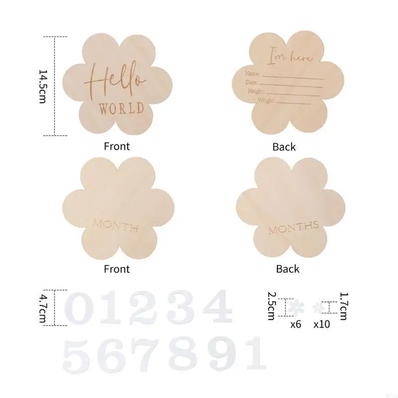 Cada flor de este set representa un mes diferente del crecimiento de su bebé, permitiéndole registrar creativamente su desarrollo.La belleza natural del material añade un toque especial a las fotografías.
