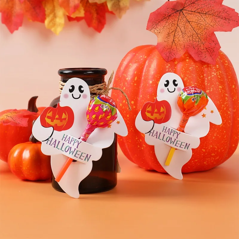 Tarjeta de embalaje de Piruleta de Halloween, 25 piezas, calabaza, fantasma, feliz decoración de fiesta de Halloween, regalos para niños, tarjetas de dulces, suministros para fiestas