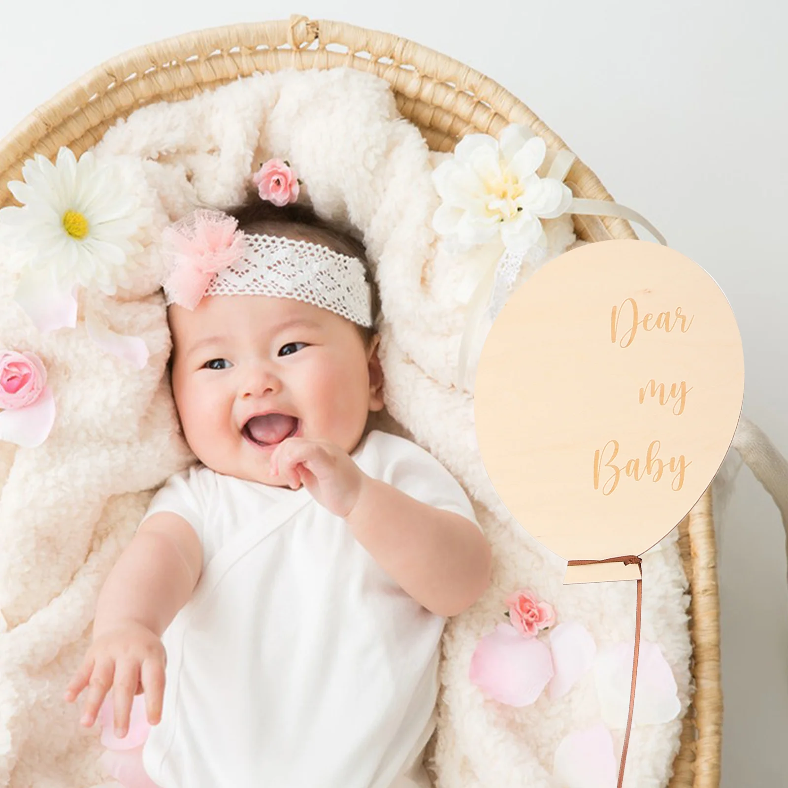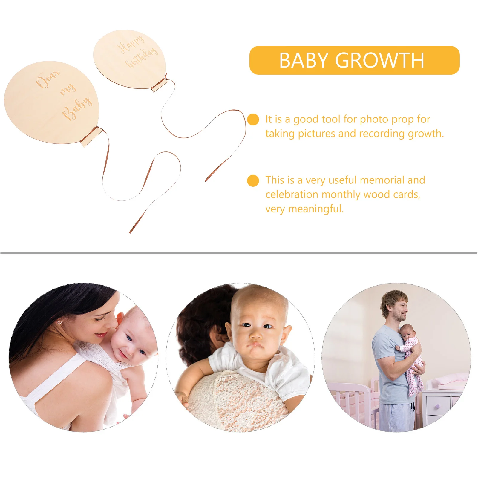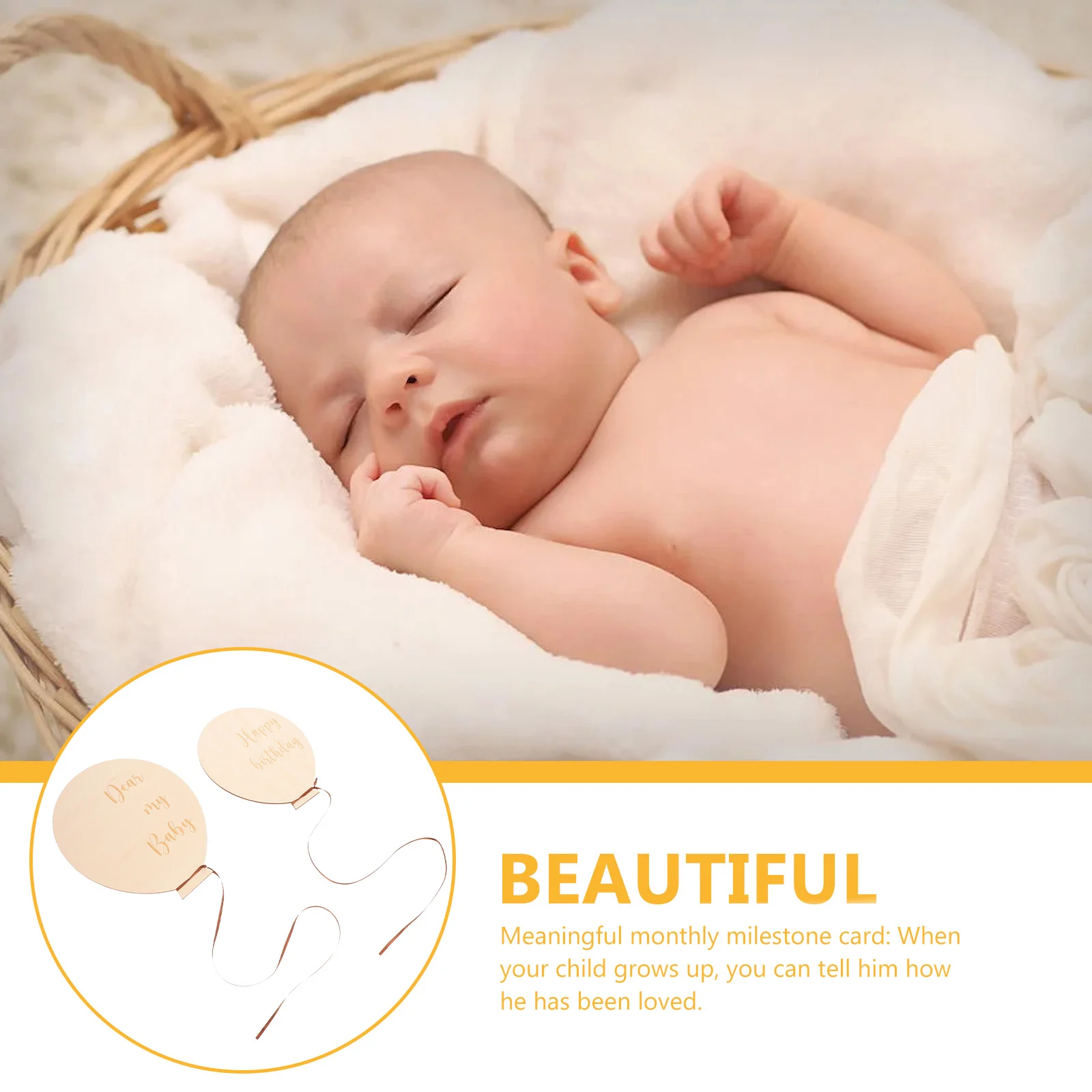 Tarjetas de madera mensuales para hito de bebé, diseño de globo, accesorio fotográfico ligero, seguro y suave para el crecimiento de recién nacido, hito mensual, 2 uds.