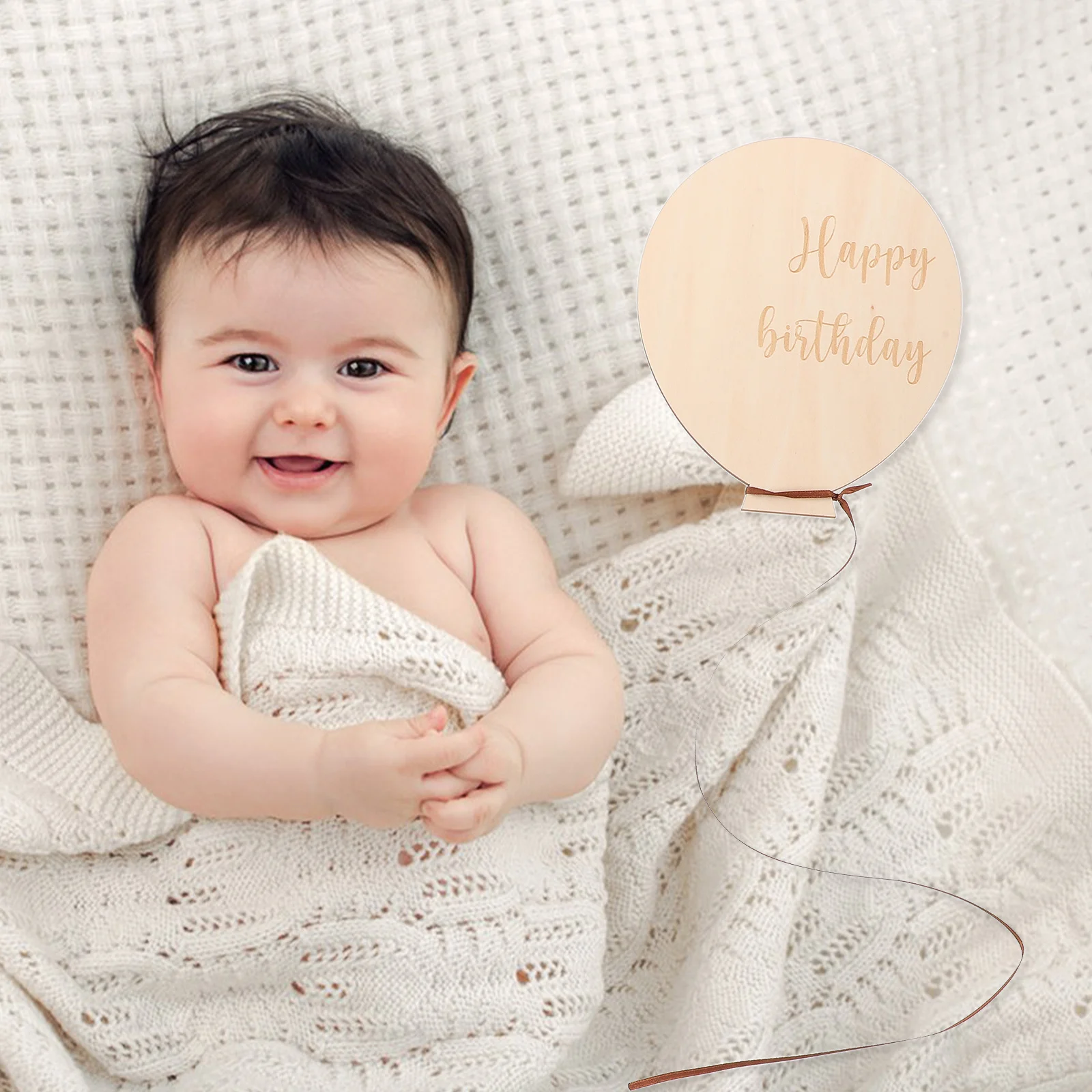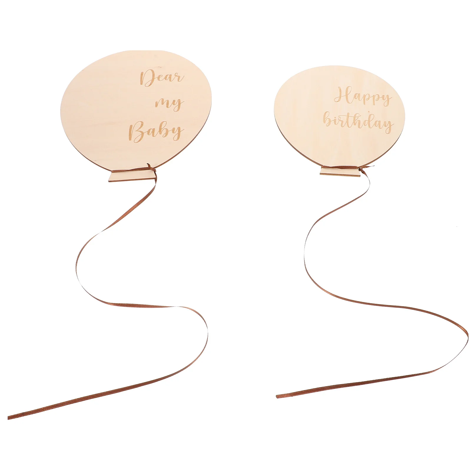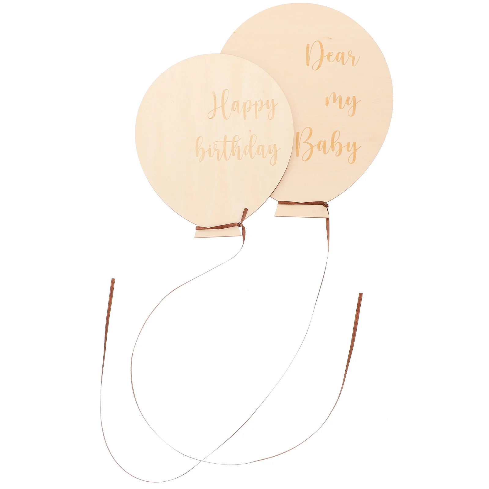 Tarjetas de madera mensuales para hito de bebé, diseño de globo, accesorio fotográfico ligero, seguro y suave para el crecimiento de recién nacido, hito mensual, 2 uds.