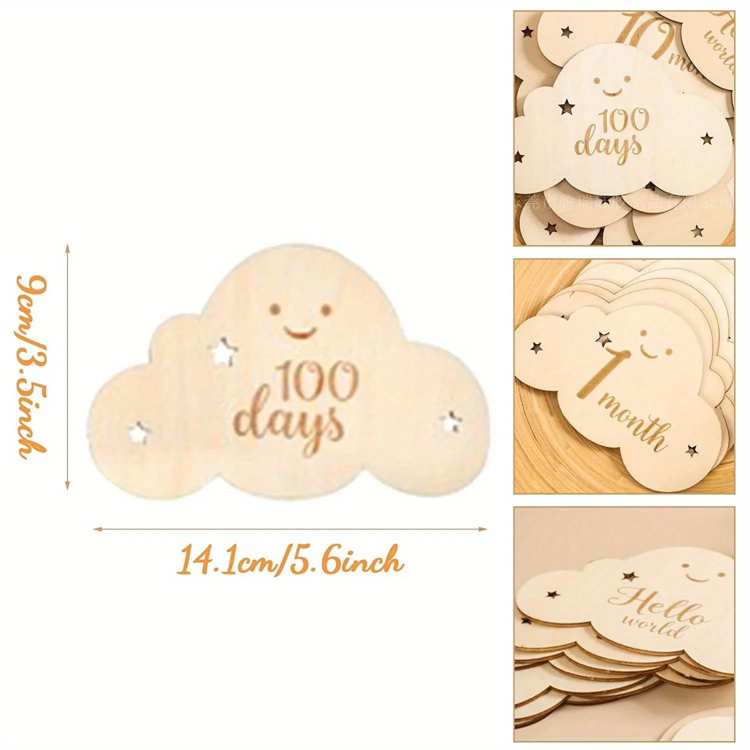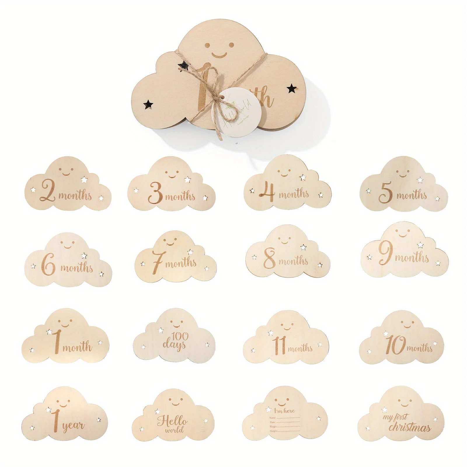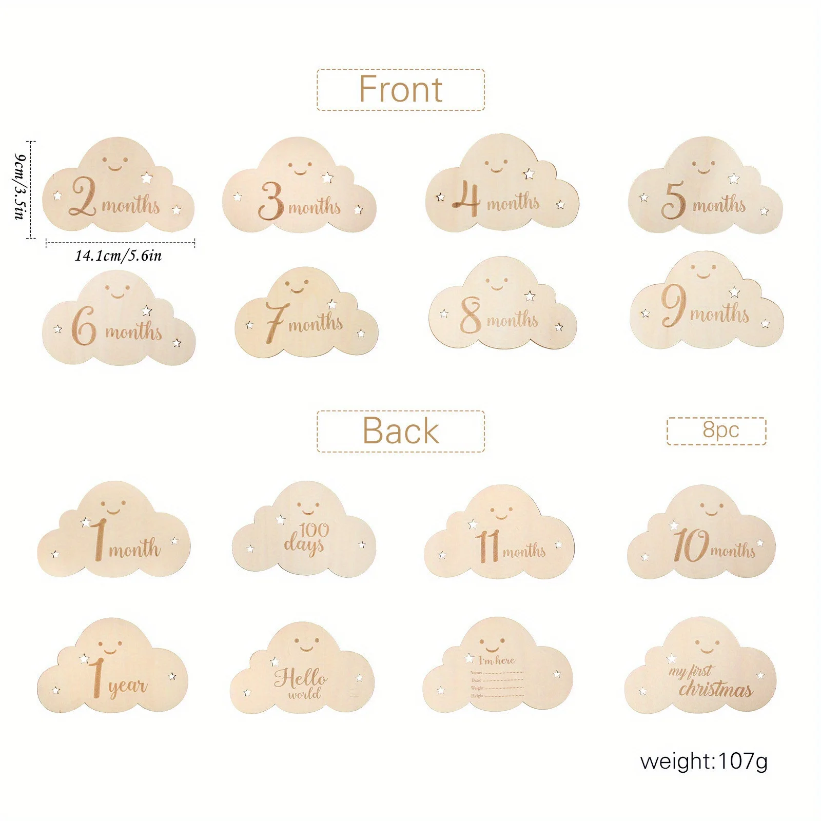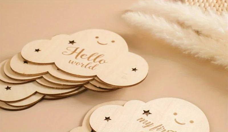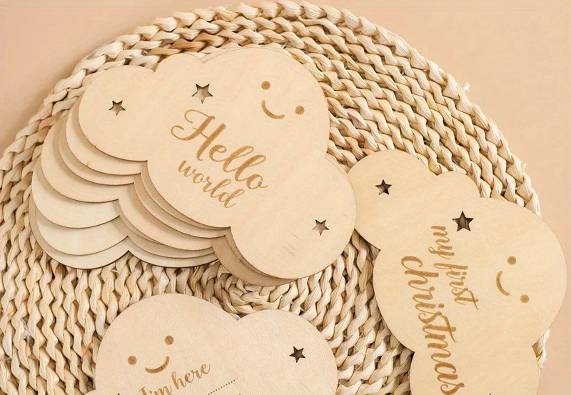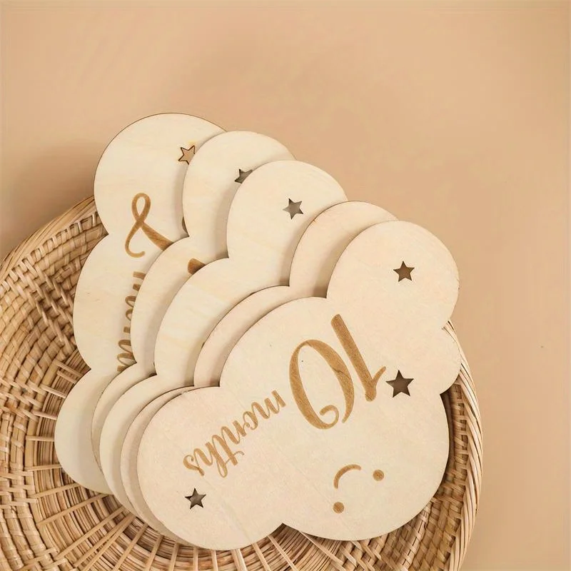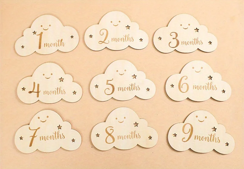 Tarjetas de Hitos madera para bebé, 8 piezas, signos nube, fotos mensuales, crecimiento marcadores viaje embarazo, accesorios