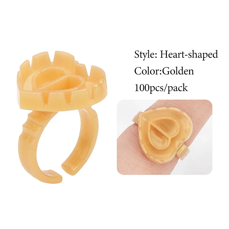 Taza de anillo de pegamento en forma de corazón, 100 Uds., extensión de pestañas de plástico desechable, soporte para pigmento de tatuaje, paleta, suministros de maquillaje para pestañas, herramientas