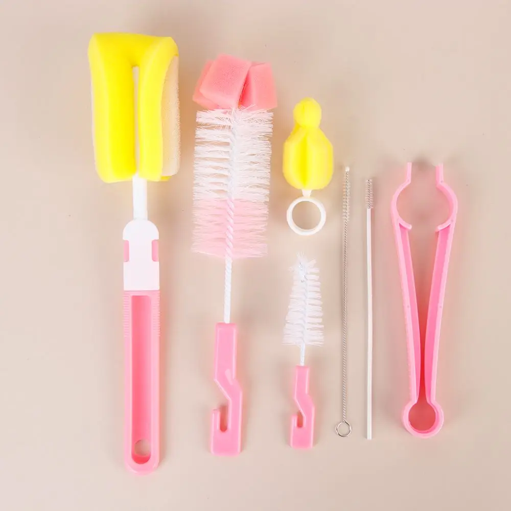 Comprar Taza de Caño para el hogar, 7 piezas, cepillo de botella giratorio, esponja limpia, pezón de bebé