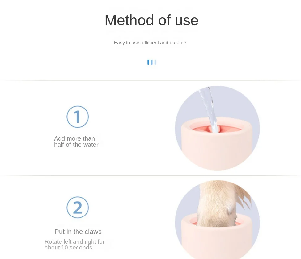 Paso 3: Gire hacia adelante y hacia atrás para que las cerdas de silicona puedan limpiar a fondo la pata.