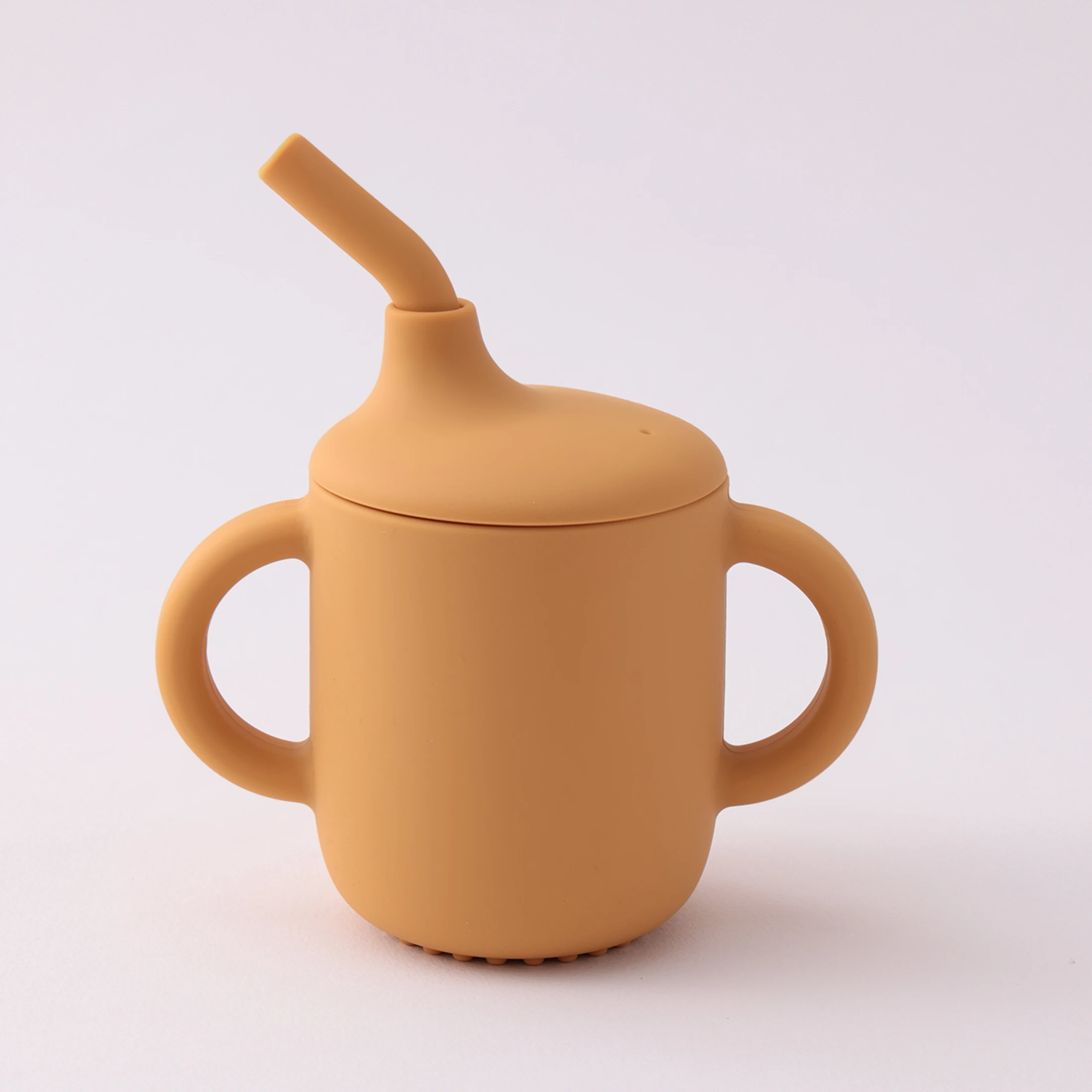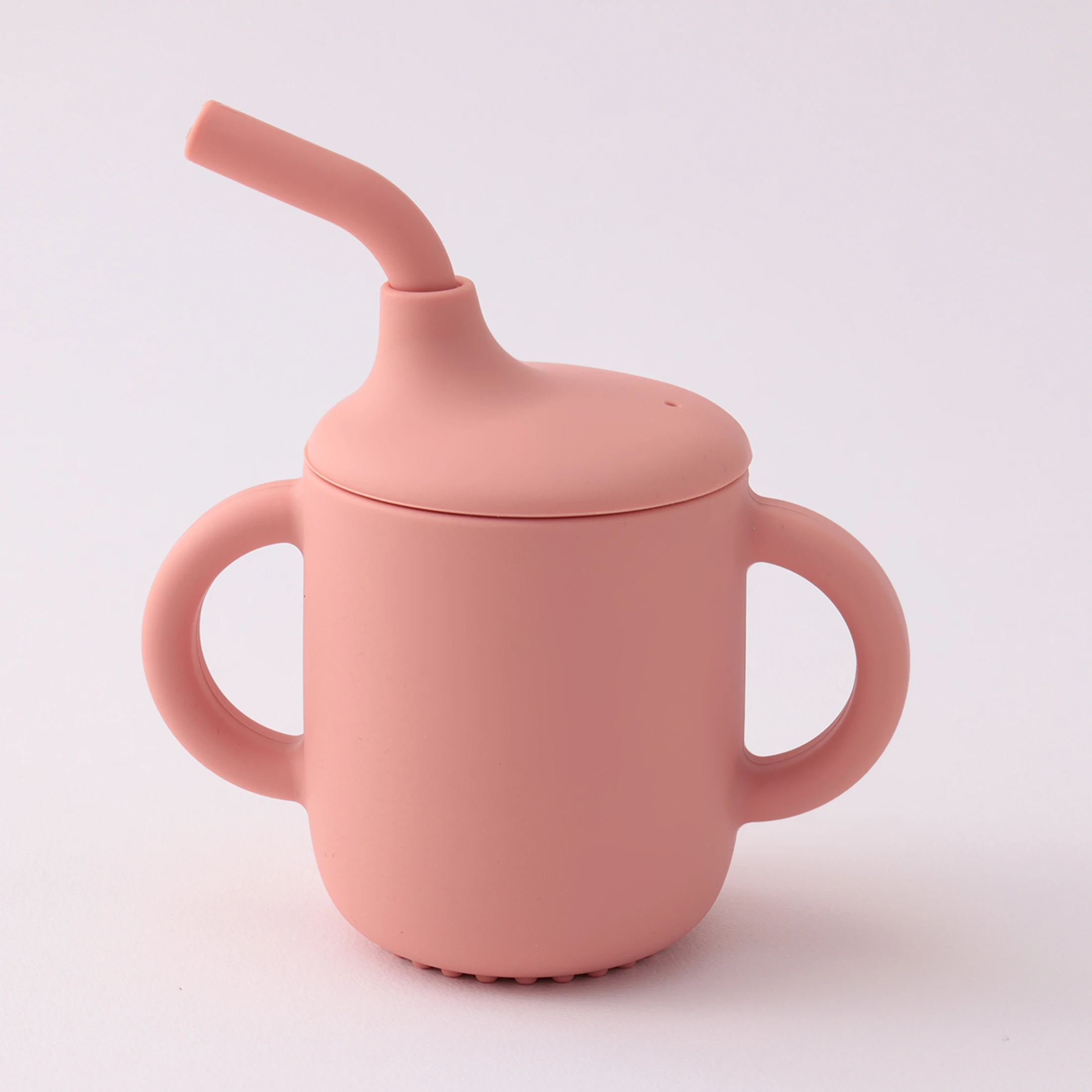 Taza con pajita de silicona para niños, 1 Uds., sin BPA, a prueba de fugas, taza de entrenamiento para niños pequeños, taza de agua de viaje con doble asa, regalos para Baby Shower