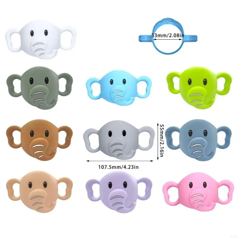 Diseñados con un patrón de elefante, estos mangos de transición para tazas no solo son elegantes sino que también garantizan un uso seguro durante la hora de comer.