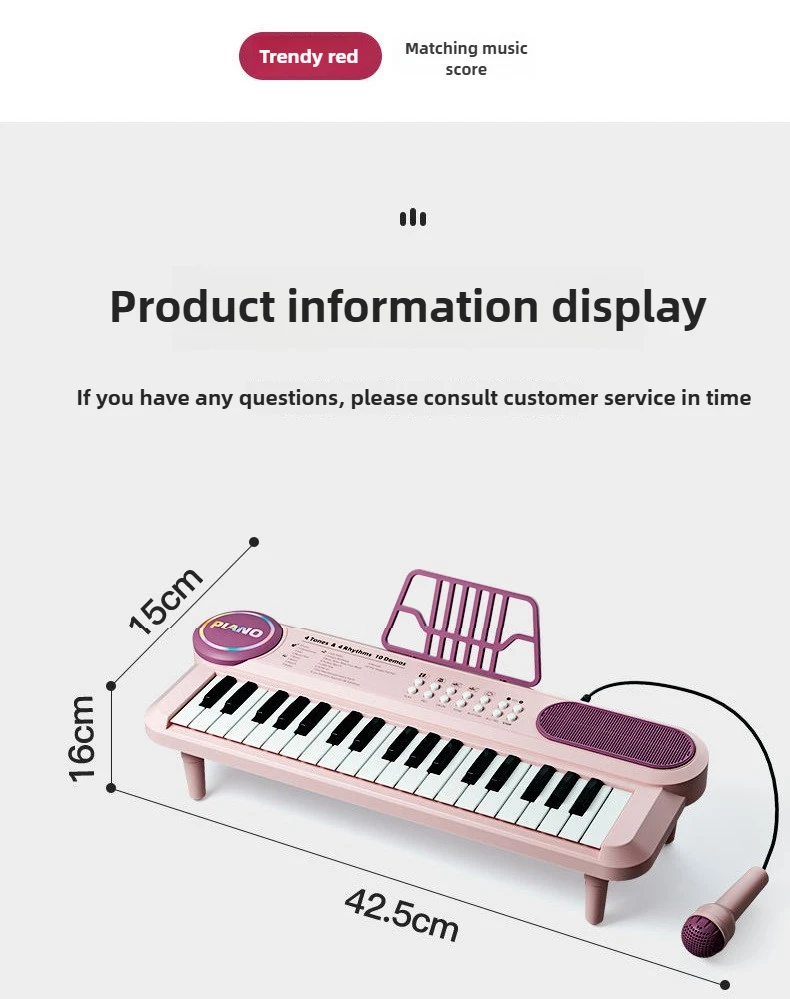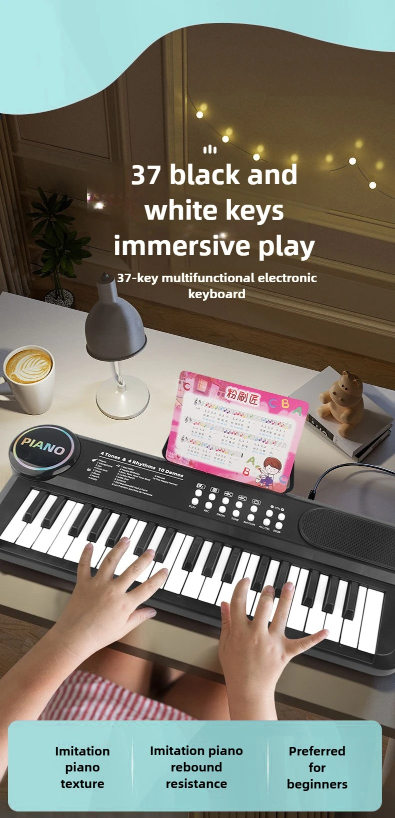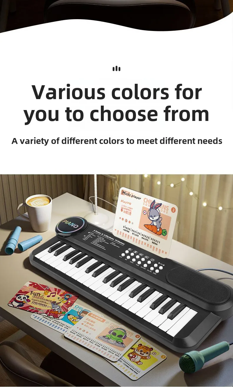 1.Diseño versátil de 37 teclas: nuestro piano con teclado electrónico de 37 teclas es perfecto para principiantes y ofrece una variedad de sonidos y funcionalidades que lo hacen ideal para la educación musical y la exploración.