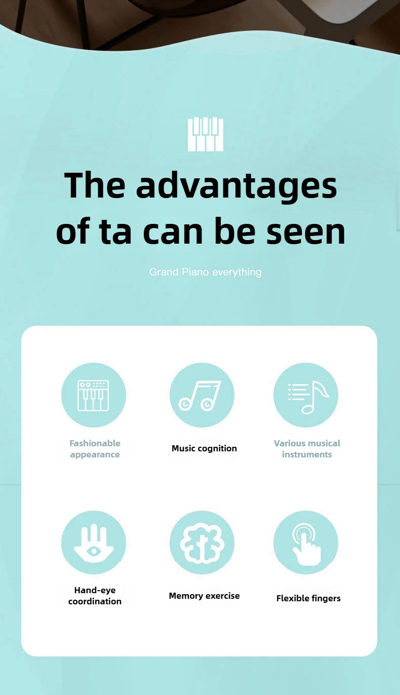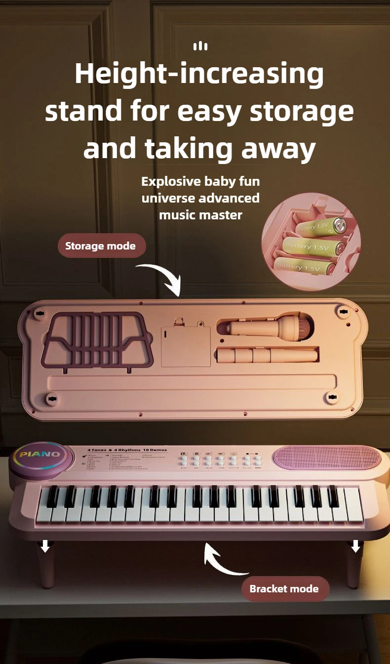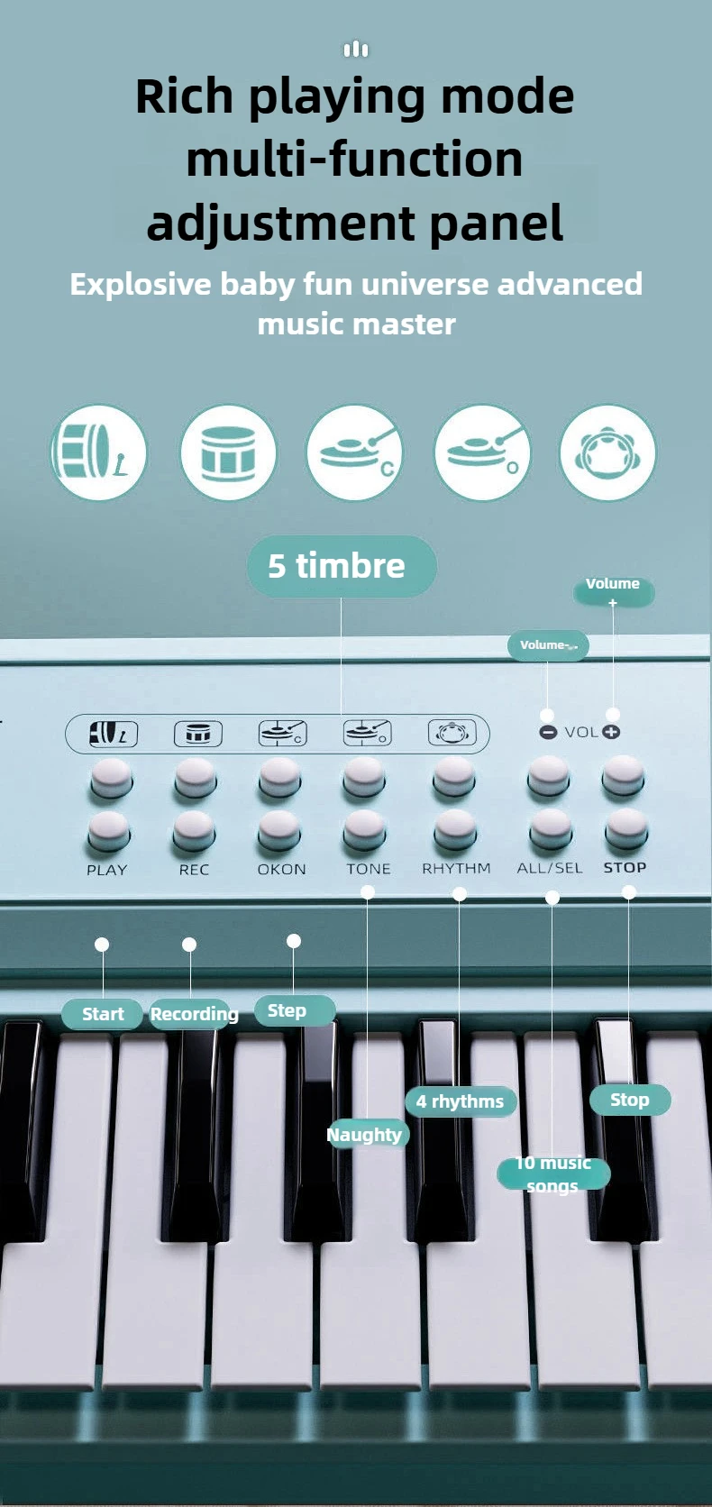 1.Diseño versátil de 37 teclas: nuestro piano con teclado electrónico de 37 teclas es perfecto para principiantes y ofrece una variedad de sonidos y funcionalidades que lo hacen ideal para la educación musical y la exploración.