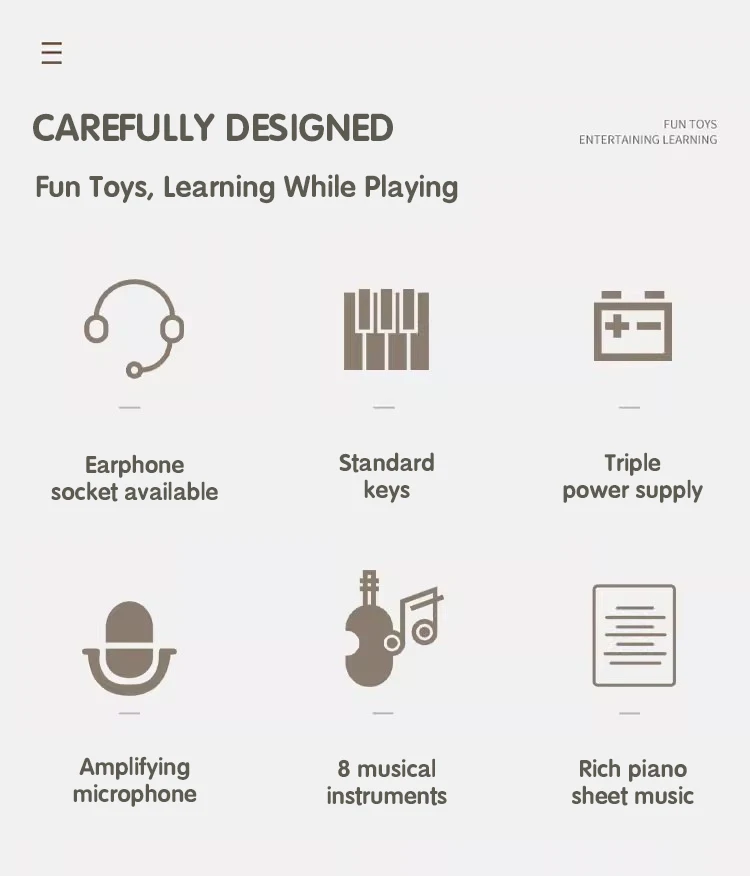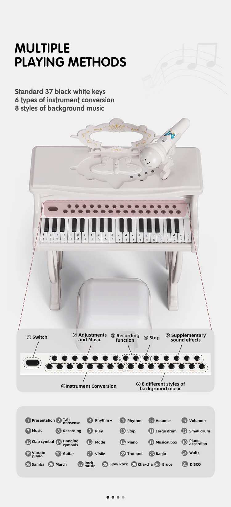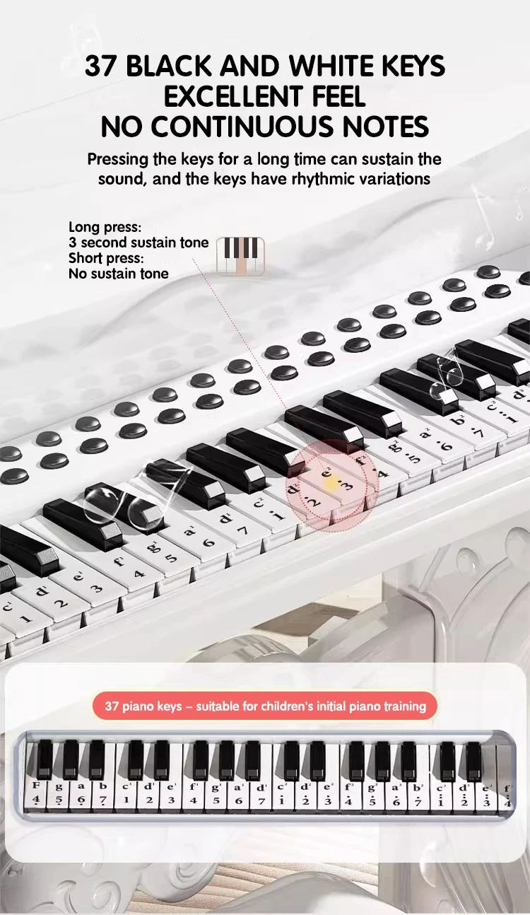 1.Diseño versátil de 37 teclas: nuestro piano con teclado electrónico de 37 teclas es para principiantes y ofrece una variedad de sonidos y funcionalidades que lo convierten en educación y exploración musical.