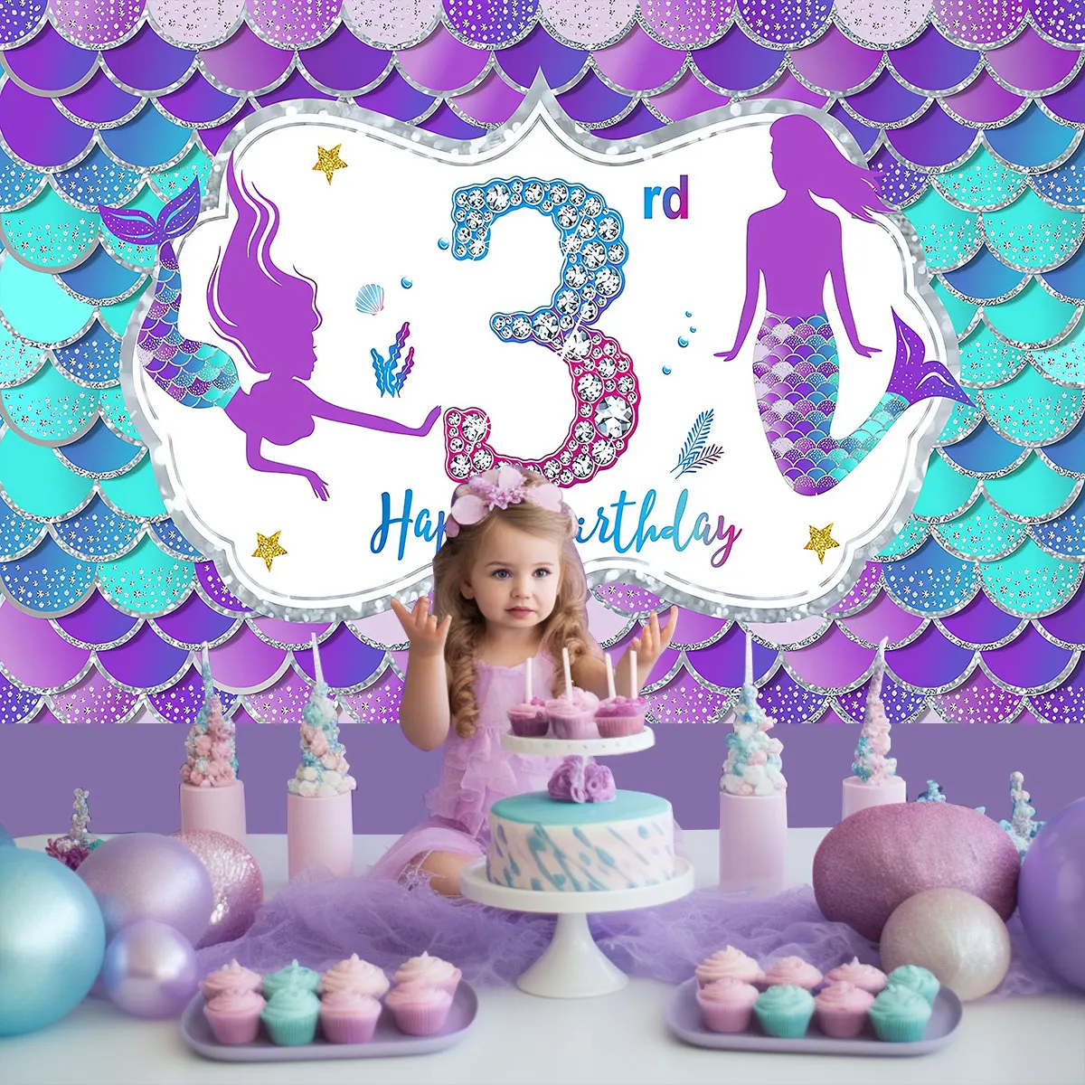 Telón de fondo de sirena para niñas, decoración de fiesta de primer cumpleaños, bajo el mar, concha de escala, accesorios de fotografía para Baby Shower