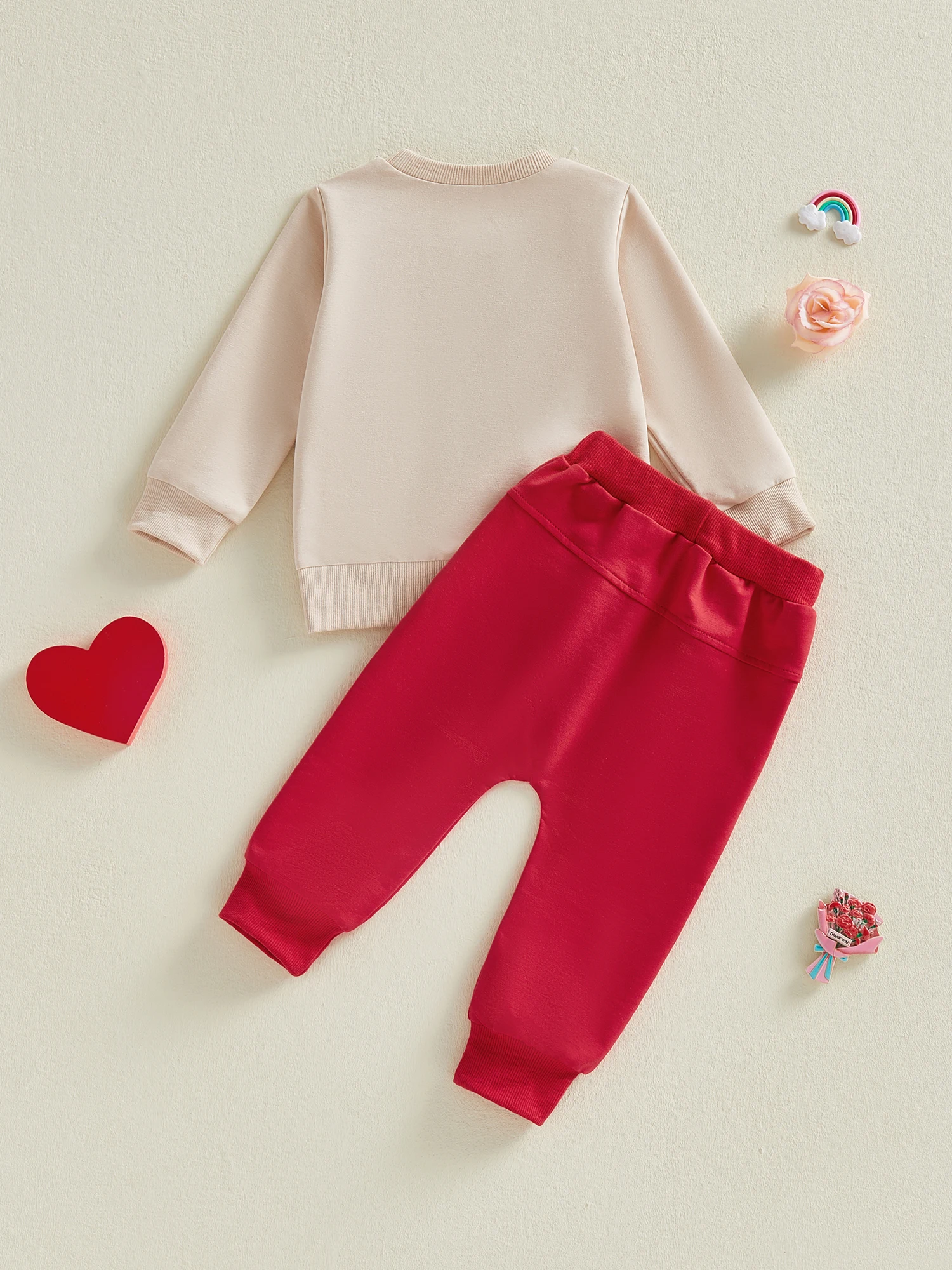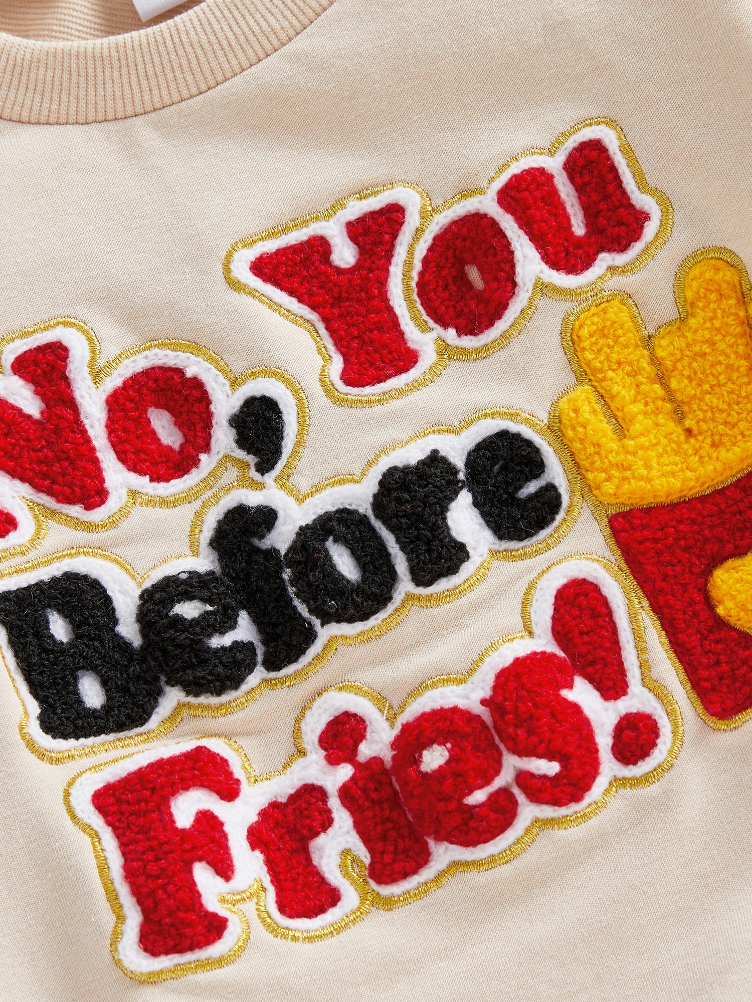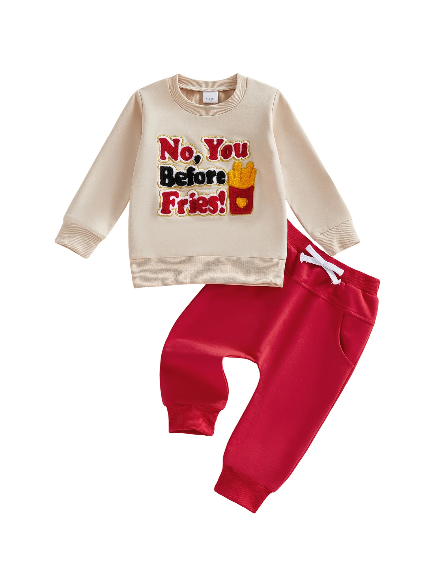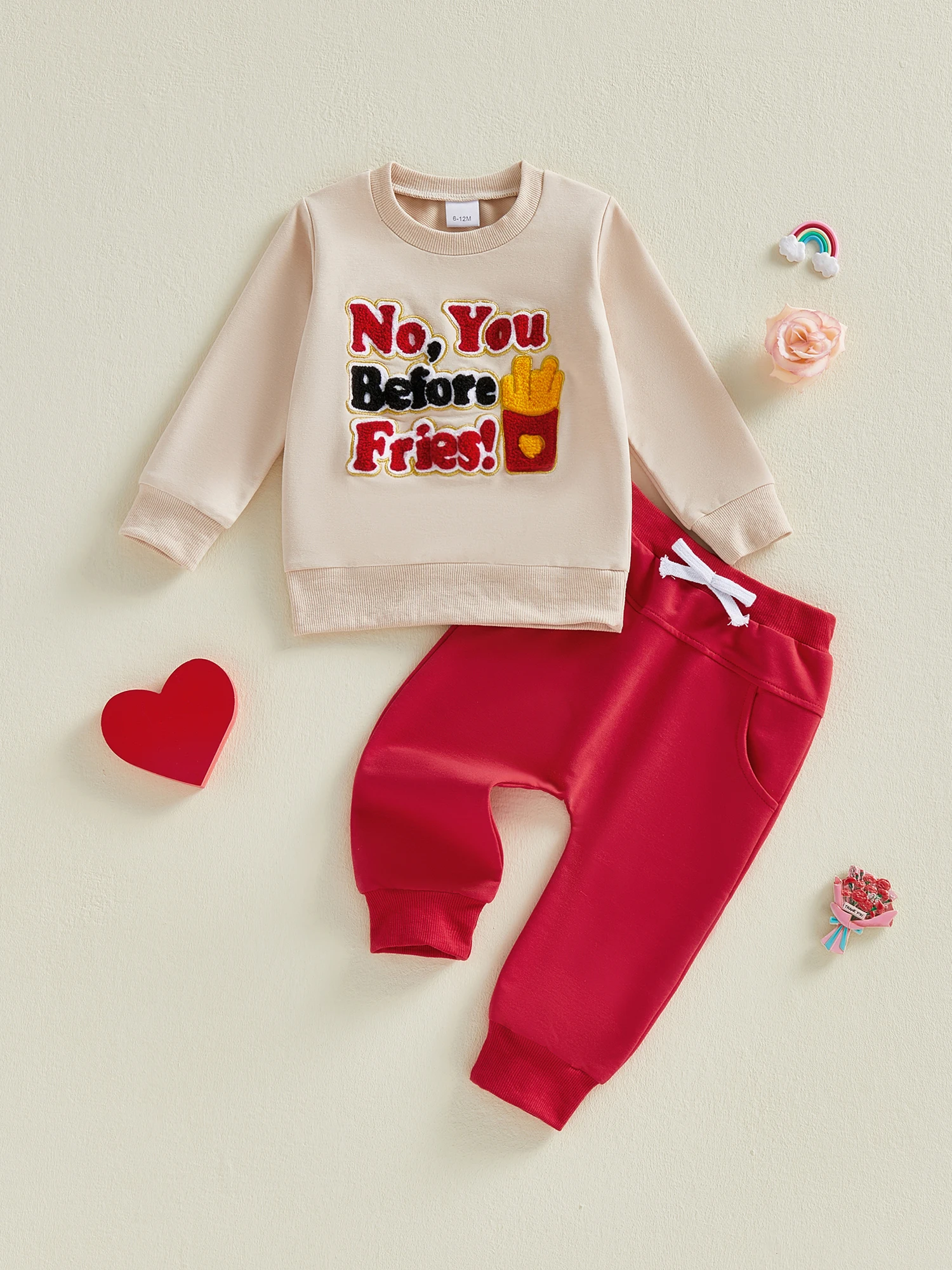 Tenues de printemps pour tout-petits garçons, pull à manches longues + pantalon solide avec lettres de frites brodées