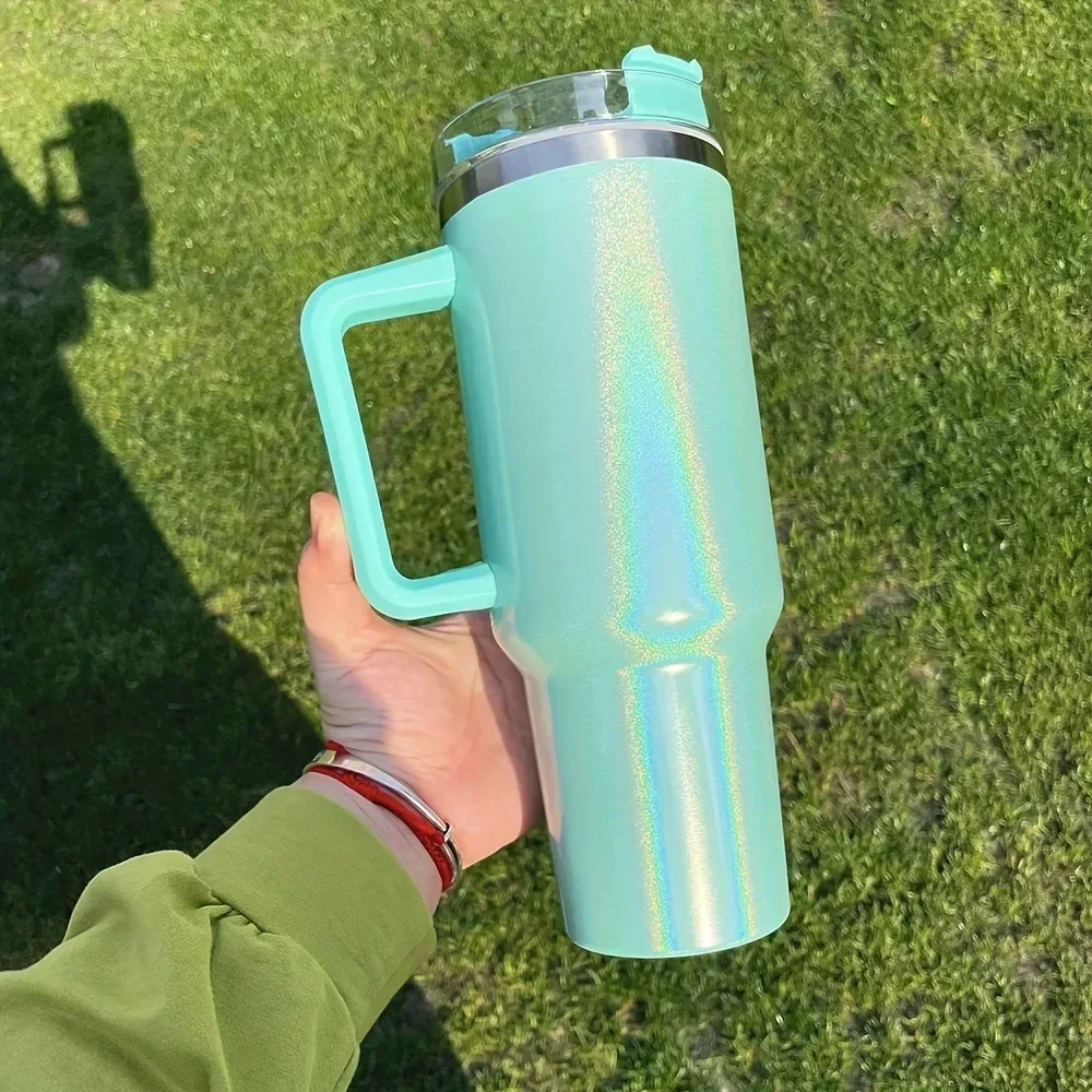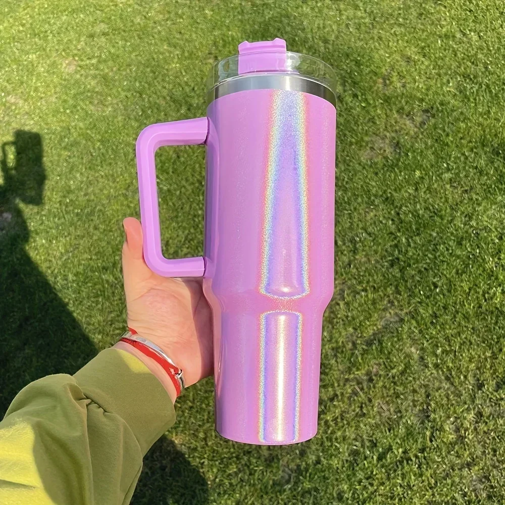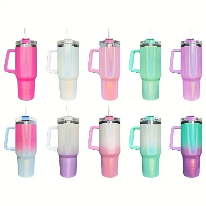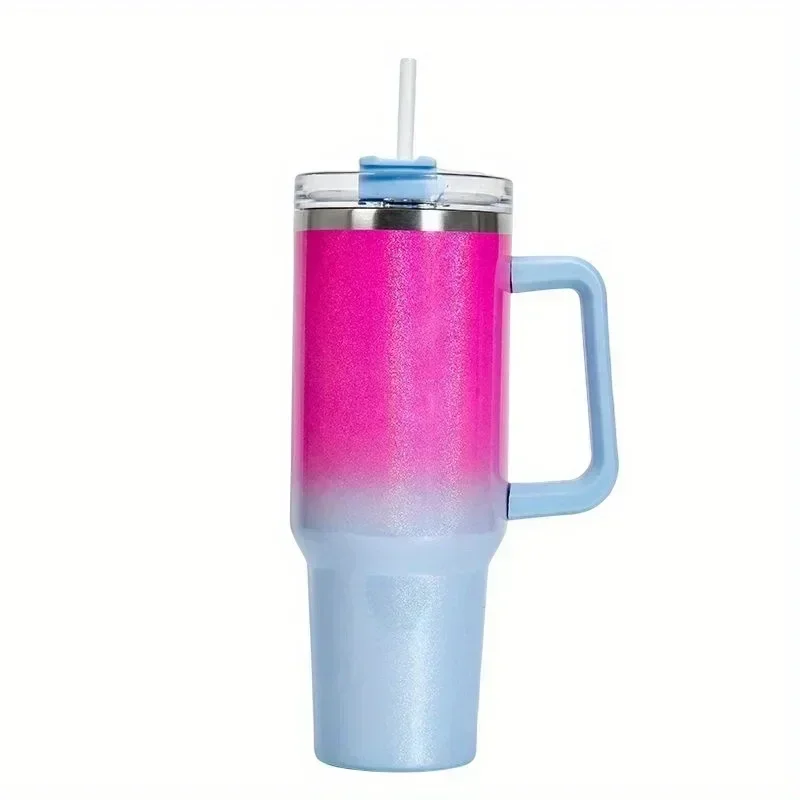 Comprar Termo portátil de acero inoxidable de gran capacidad, vaso plano liso con tapa y pajita, 40oz