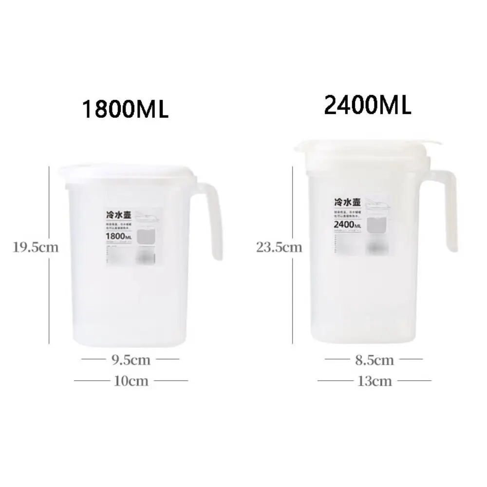 Material: plástico Color: transparente Capacidad: 1800/2400ml Tamaño: 19,5*9,5*10cm (7,68*3,74*3.94in)/23,5*13*10cm (9,25*5,12*3.94in) El paquete incluye: 1 ud. * Hervidor frío. Notas: debido a la medición manual, permita pequeños errores de tamaño, consulte el producto real. Debido a la luz de disparo, el color real puede ser diferente de la imagen, consulte el producto real, gracias por su comprensión.