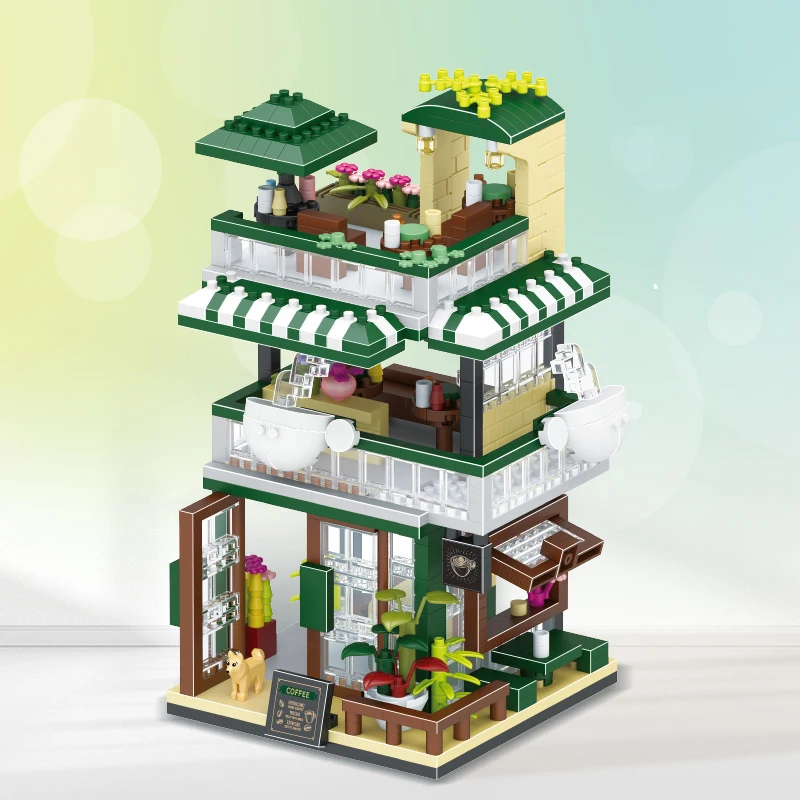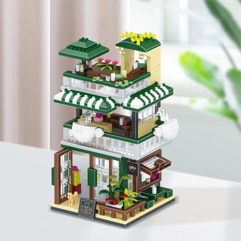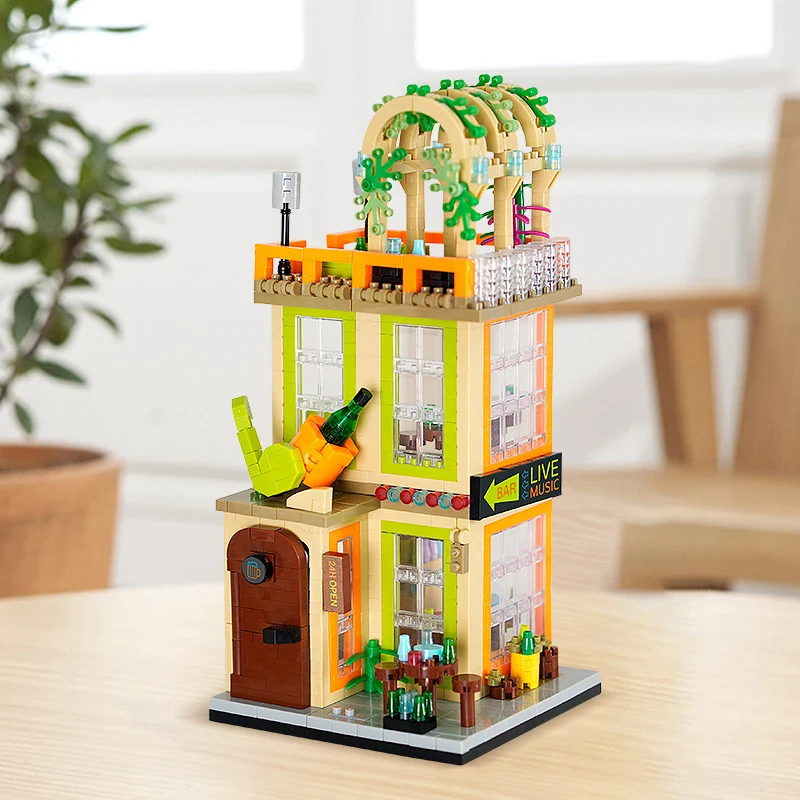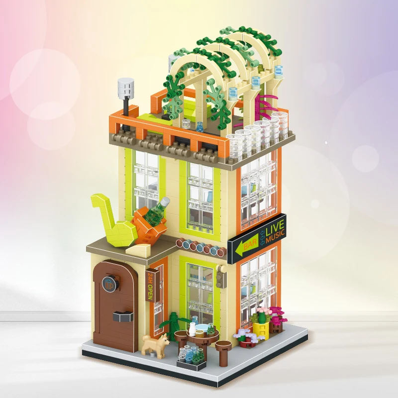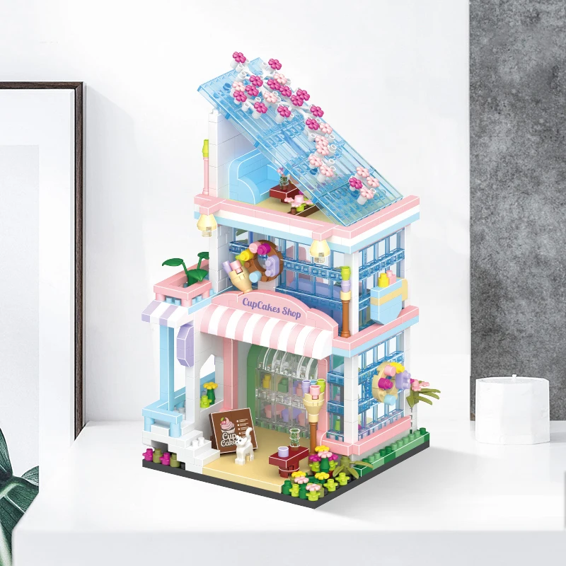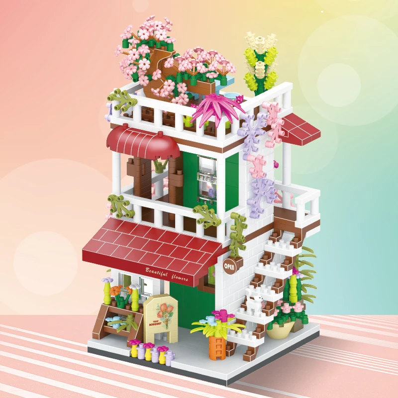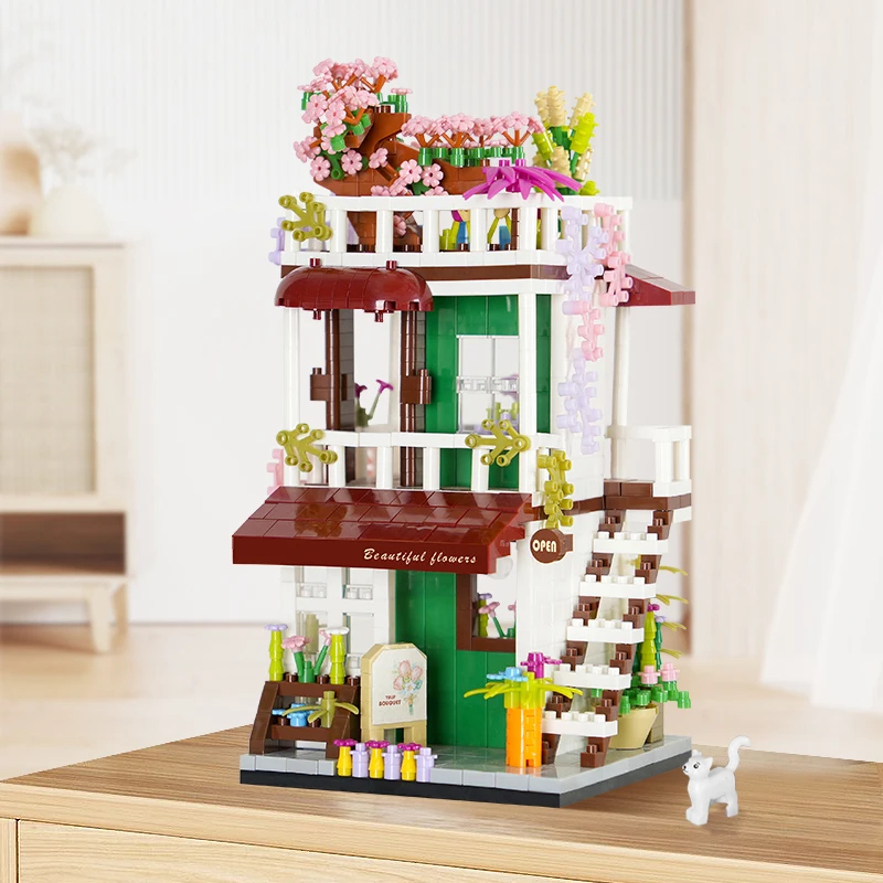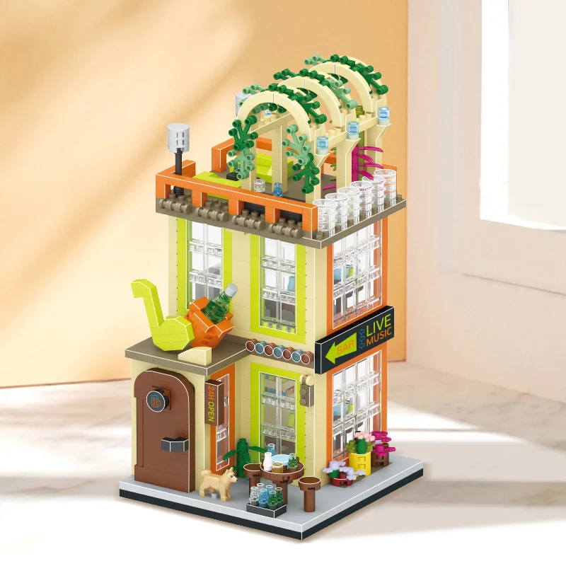 Comprar Tienda de bloques de construcción de casa, arquitectura, vista a la calle, modelo de tienda, Mini ladrillos DIY, regalo de cumpleaños, juguetes para niños, regalos de navidad