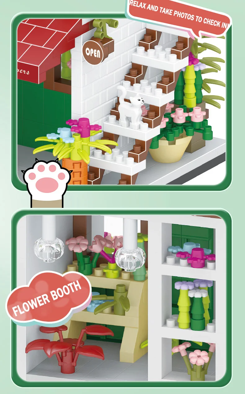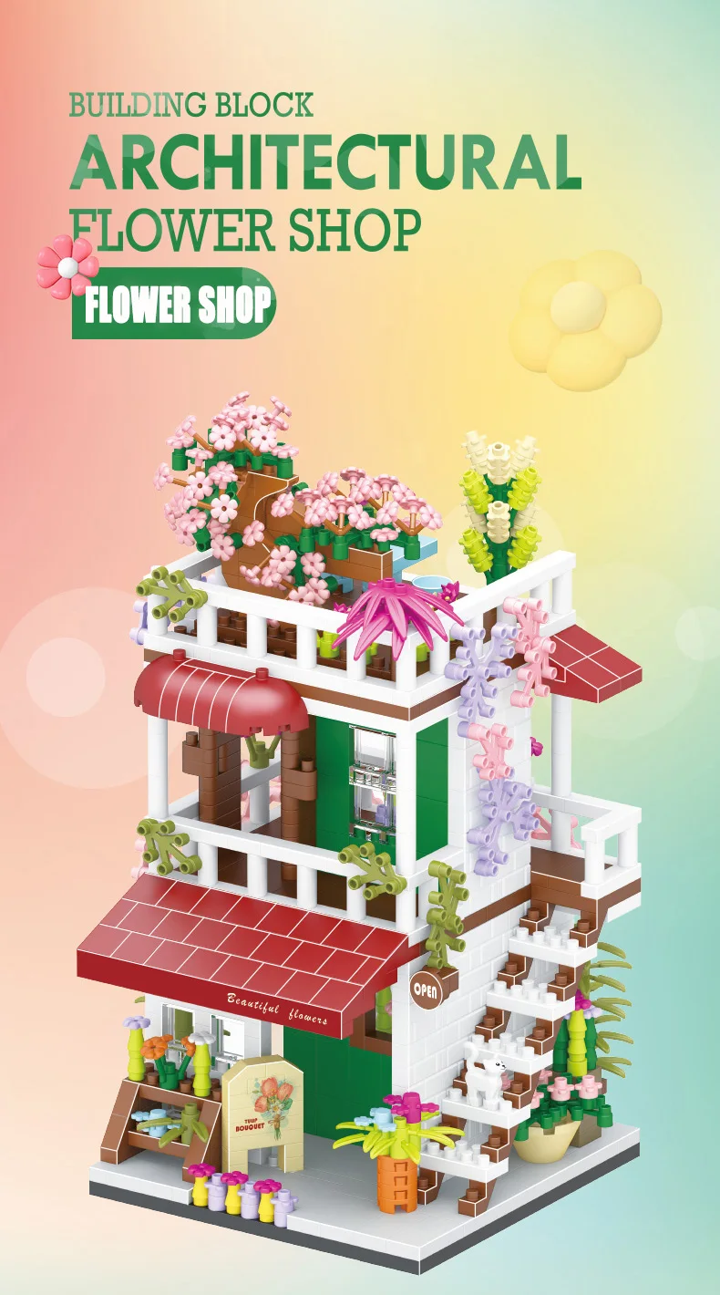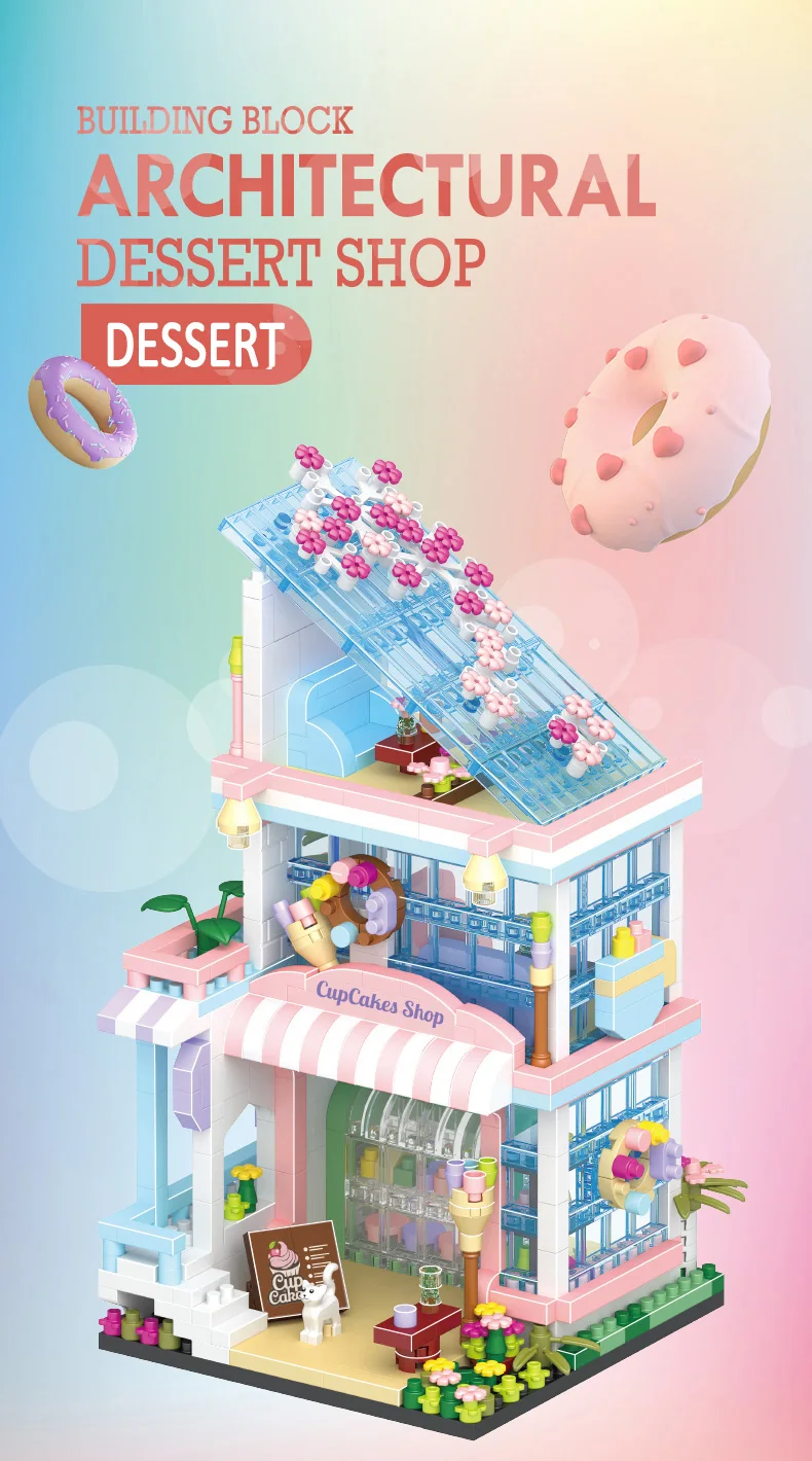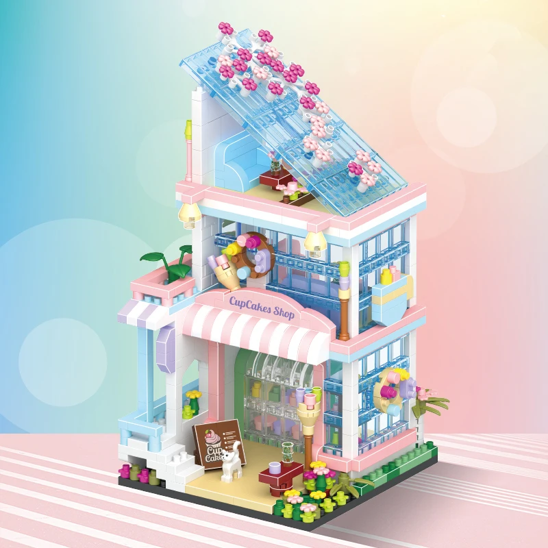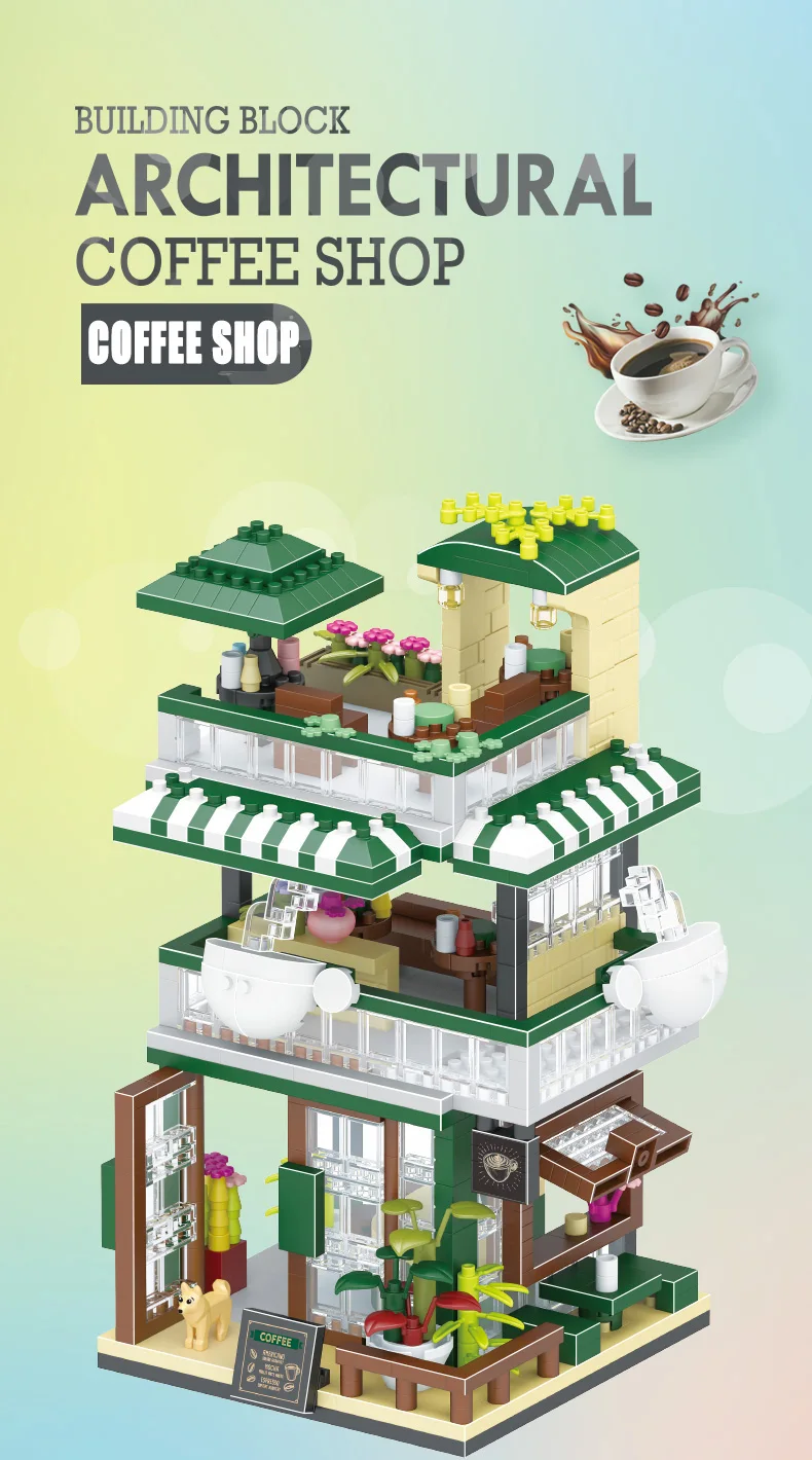 Comprar Tienda de bloques de construcción de casa, arquitectura, vista a la calle, modelo de tienda, Mini ladrillos DIY, regalo de cumpleaños, juguetes para niños, regalos de navidad