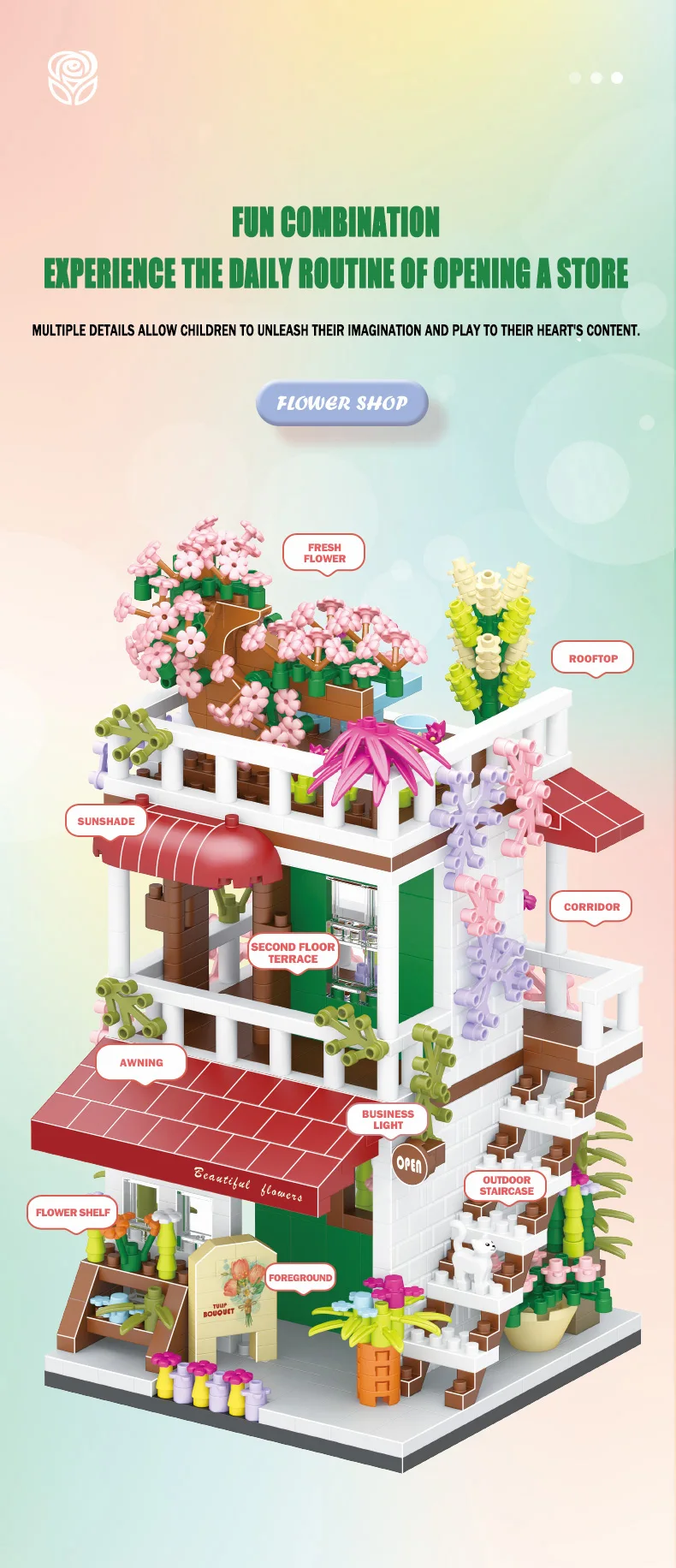 3.Bloques de construcción divertidos:La combinación divertida permite a los niños experimentar el juego diario de compras.