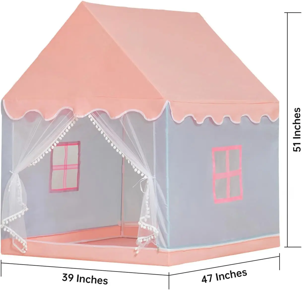 Aviso: es solo una tienda de campaña sin bola de luz y otros accesorios.【Información del producto】 Tamaño desplegado: 39x47x51 pulgadas.Si hay muchas muñecas, los niños también pueden dormir cómodamente.En una tienda de campaña infantil grande, dos niños pueden tumbarse cómodamente.¡Diviértete en la base secreta con tus amigos!【Material de tela de seguridad】La carpa de entretenimiento para niños está hecha de tela de poliéster de alta calidad, que es duradera, resistente a grietas, no tóxica, insípida e inodora, segura e inofensiva para los niños.Esta adorable carpa rosa está diseñada para tus niñas y ayuda sinceramente a sus pequeños sueños de princesa.【Montaje sencillo】 No se requieren herramientas especiales.Se puede combinar rápida y fácilmente.Cuando no esté en uso, dóblelo en la bolsa de almacenamiento, que no ocupa espacio de almacenamiento y no está en el camino.Es propicio para el uso del espacio.Debido a su peso ligero, fácil de transportar y guardar, ¡también se puede utilizar en interiores y exteriores!【Escena aplicable】 Fiesta de cumpleaños, parque, picnic, patio trasero, parque de atracciones, camping, excursión, etc.Se puede utilizar de forma segura en la escuela, carnaval, juegos en interiores y exteriores.¡Lo mejor para Navidad, cumpleaños, celebración en el jardín y regalos infantiles!【Precauciones】 1. La junta en T y el puntal deben ser la inserción más apretada 2. Cubra la funda de tela después de instalar el puntal 3. La tienda no incluye luces esféricas ni decoraciones.