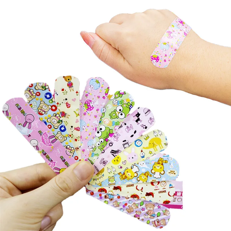 Tiras de ayuda de banda de yeso de dibujos animados, Mini parche transpirable, vendaje adhesivo médico impermeable para primeros auxilios, Woundplast, 100 unids/set