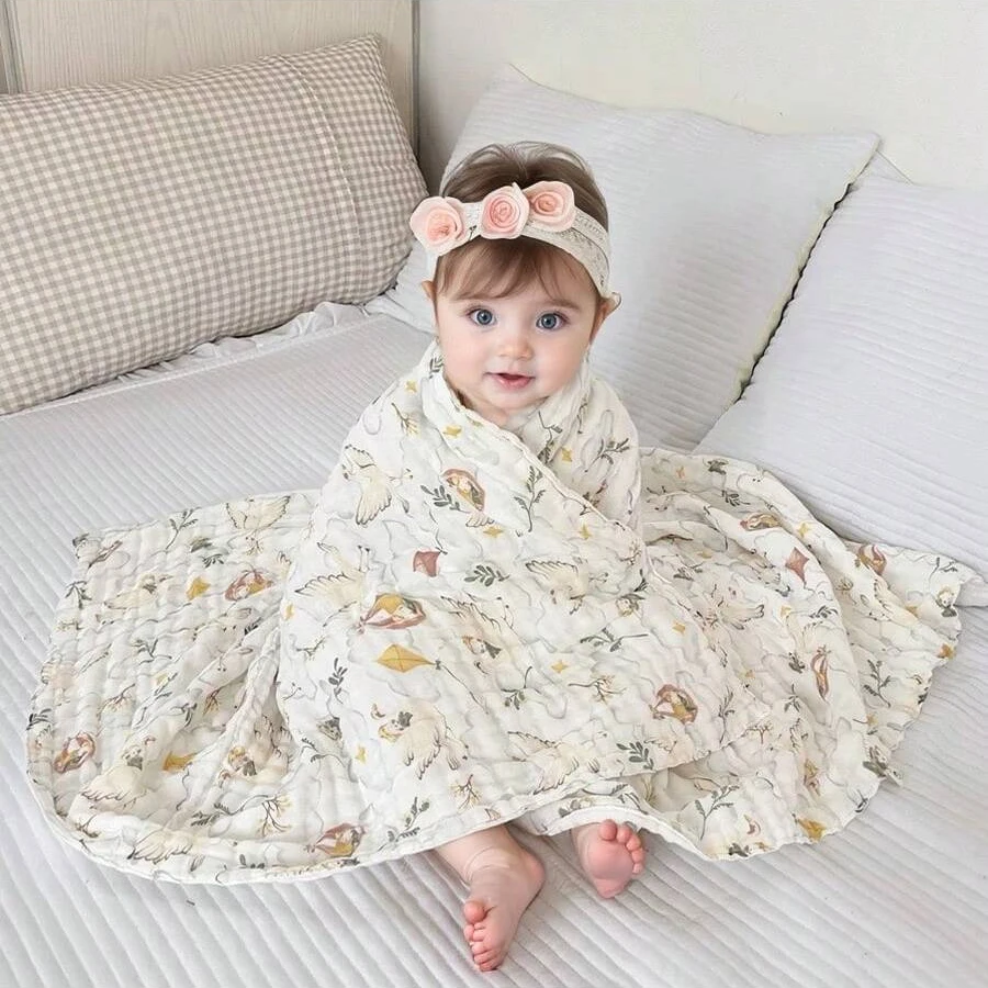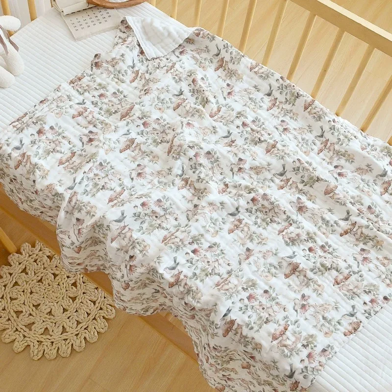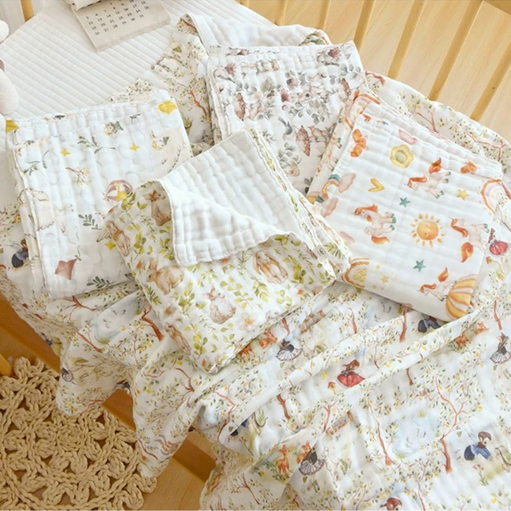 Toalla de baño para bebé de 105x105cm, manta para niños pequeños, ropa de cama envolvente, 6 capas, gasa de burbujas de clase A, toalla de algodón, manta de muselina