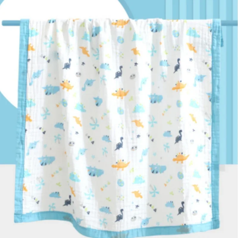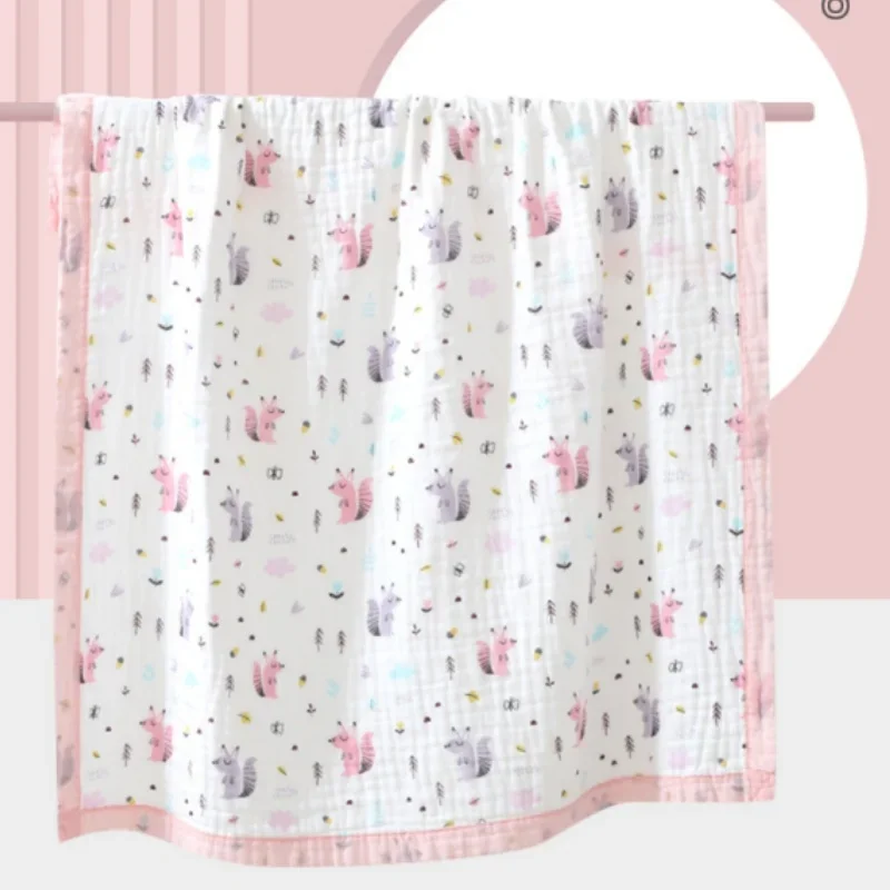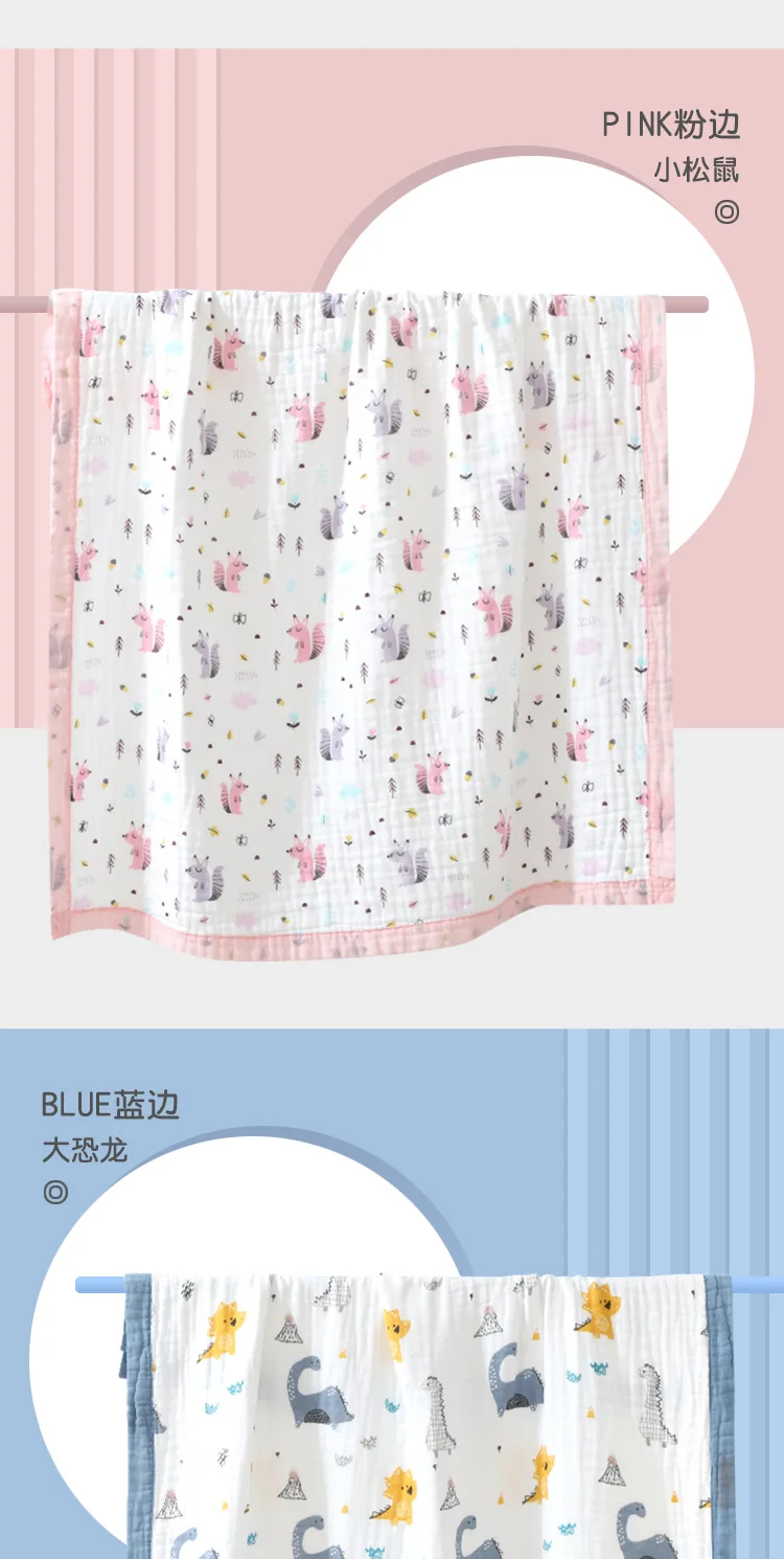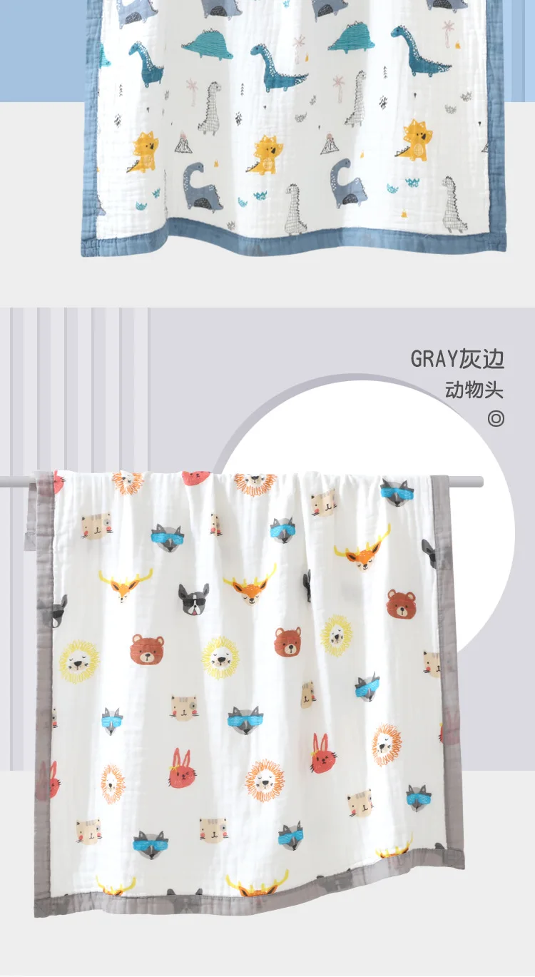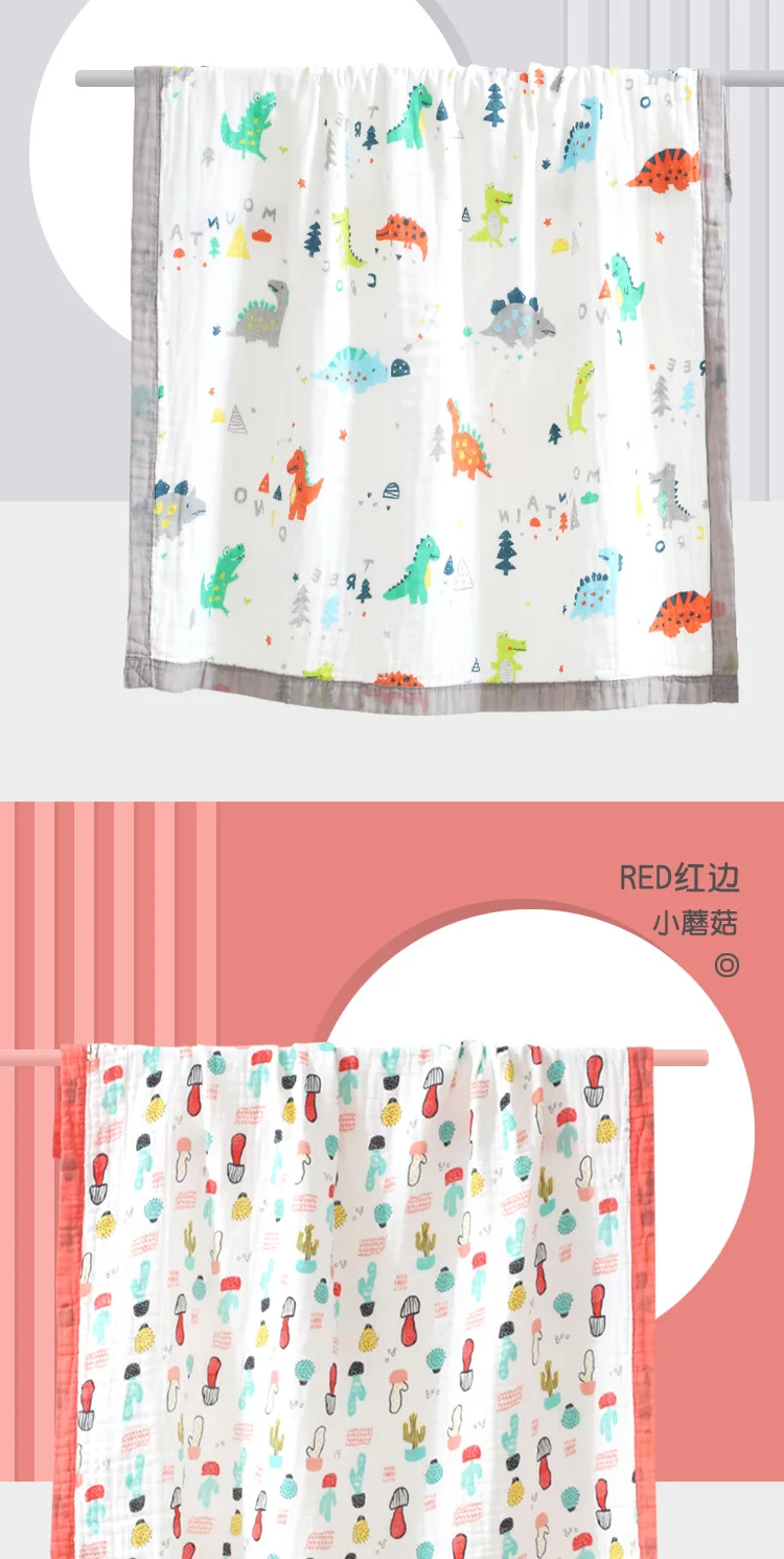 Toalla de baño para bebé de 110x110CM, manta envolvente de 6 capas de muselina de algodón con estampado de dibujos animados, manta suave para cochecito de gasa para recién nacido
