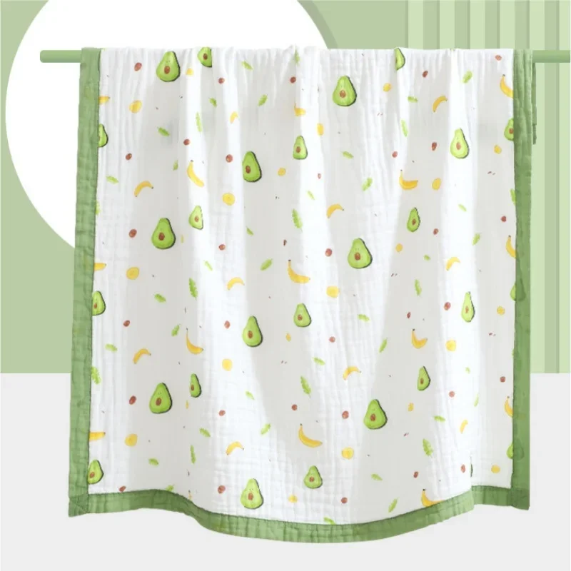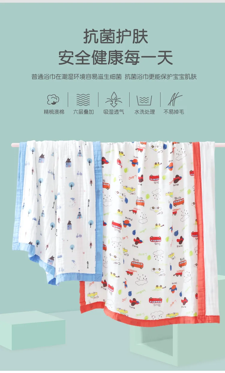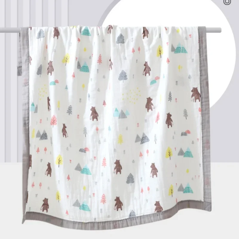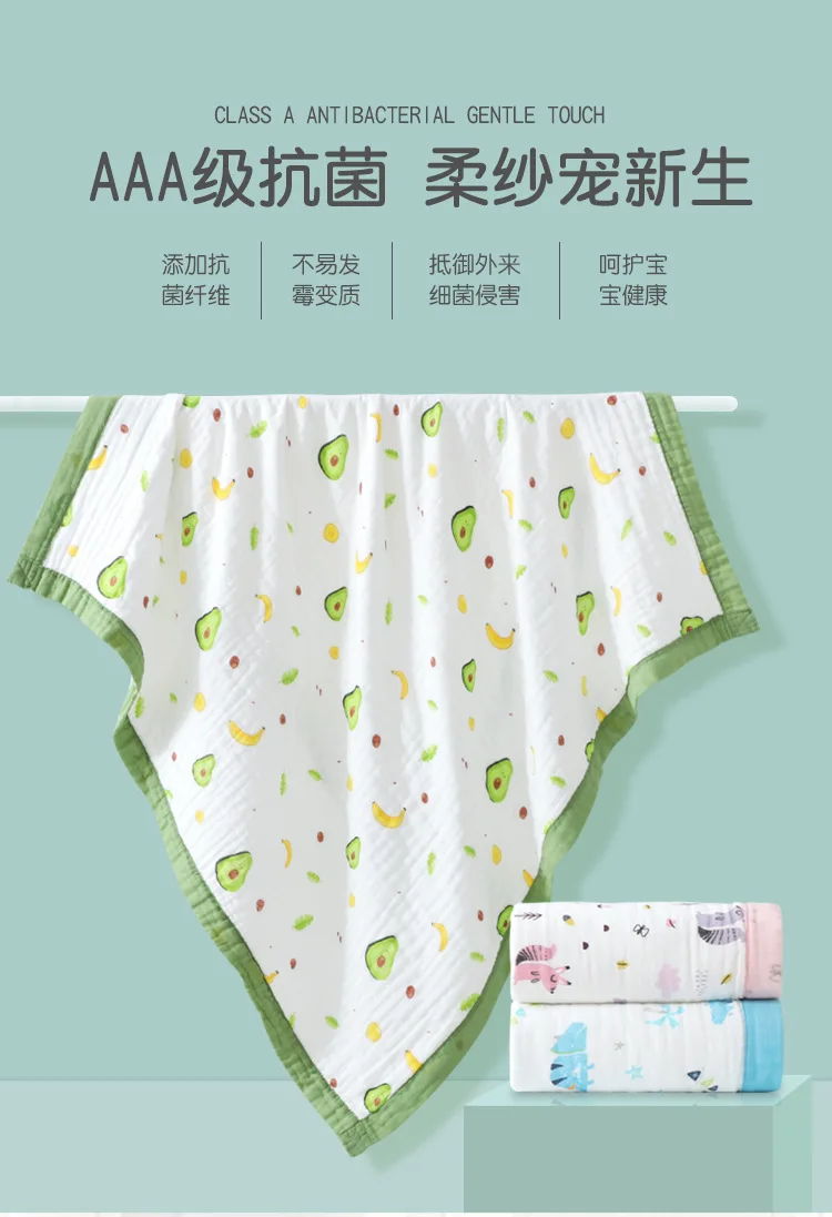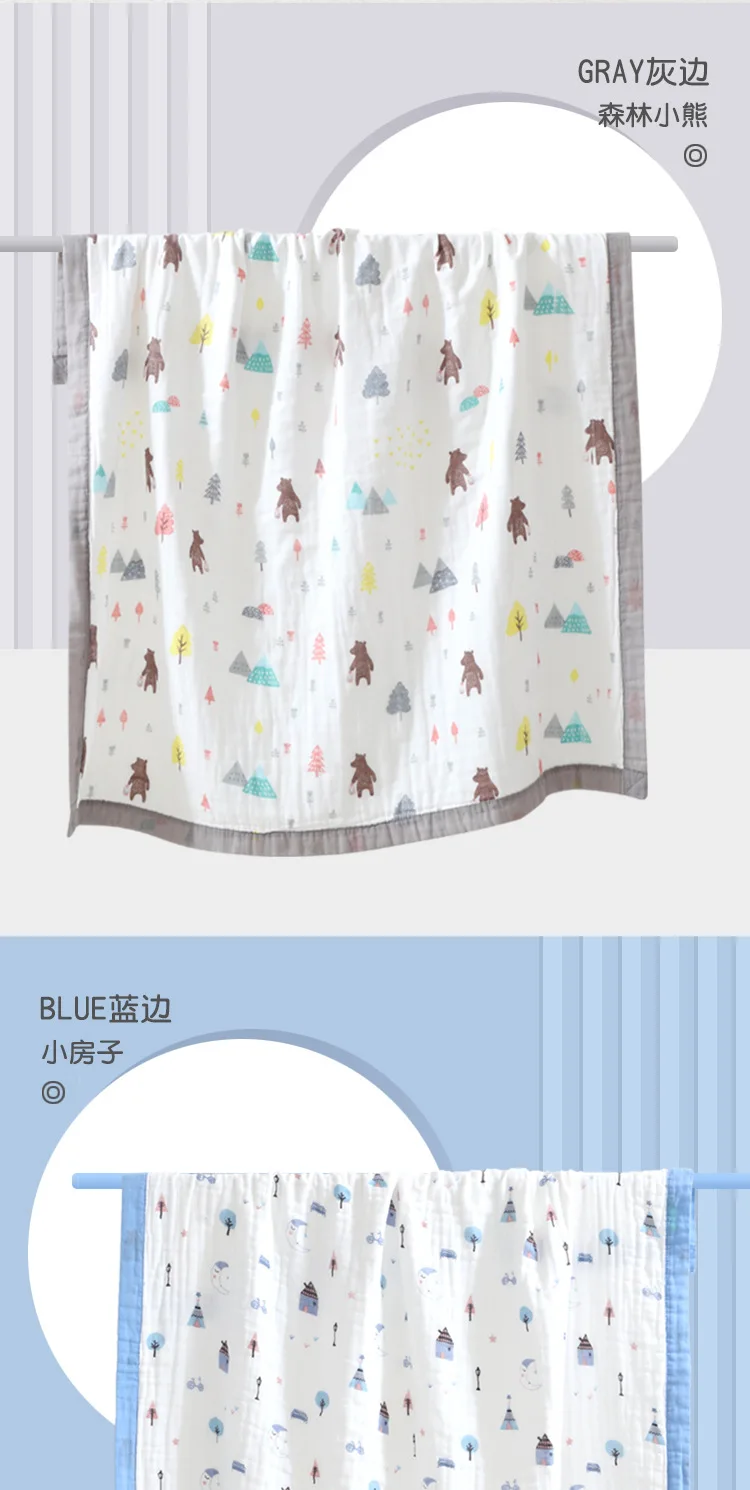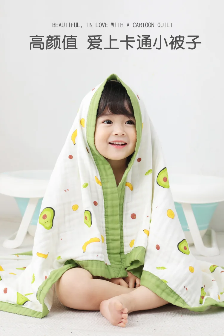Toalla de baño para bebé de 110x110CM, manta envolvente de 6 capas de muselina de algodón con estampado de dibujos animados, manta suave para cochecito de gasa para recién nacido