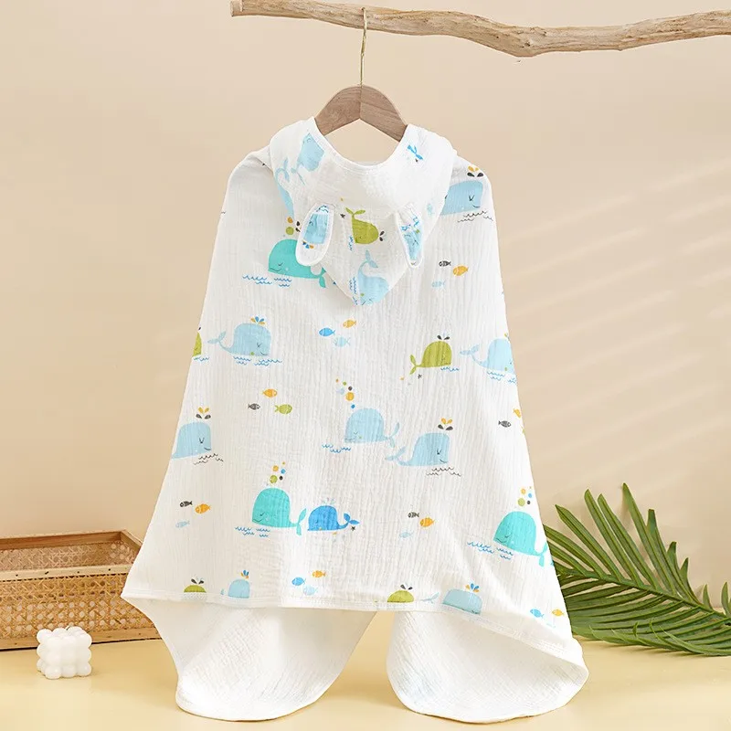 Toalla de baño con capucha para bebés y niños, capa con estampado de dibujos animados, albornoz, manta envolvente, capa absorbente de algodón suave, Poncho, bata para niños pequeños