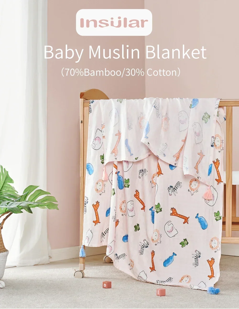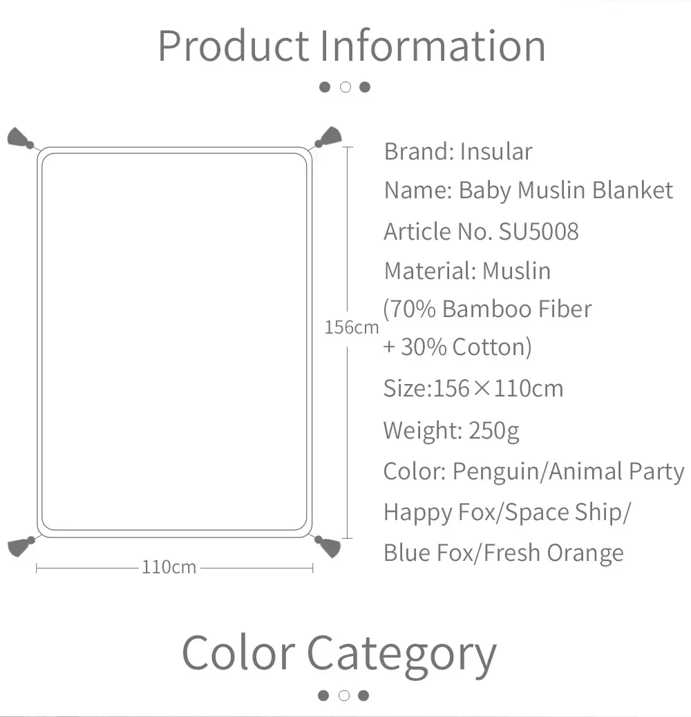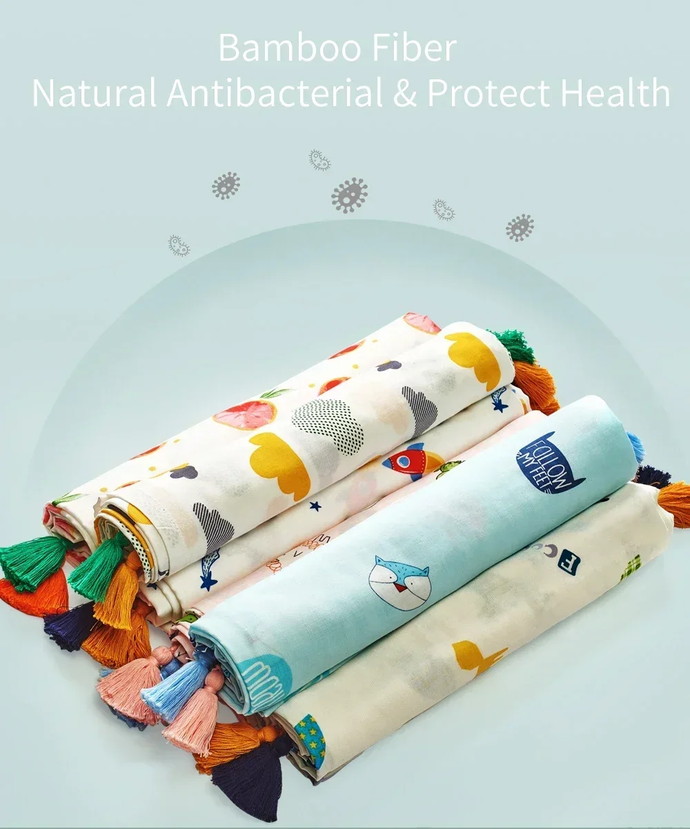 Toalla de baño INSULAR para recién nacido, manta suave de muselina para chico, tela envolvente de algodón para bebé, manta para bebé, tela orgánica con borlas, verano 110x156CM