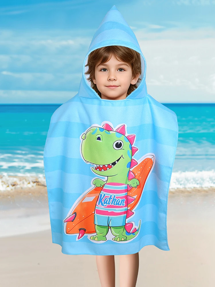 Toalla de chal con capucha para niños, traje de baño de playa para niños, bata, toalla de chal con capucha, dinosaurio animado