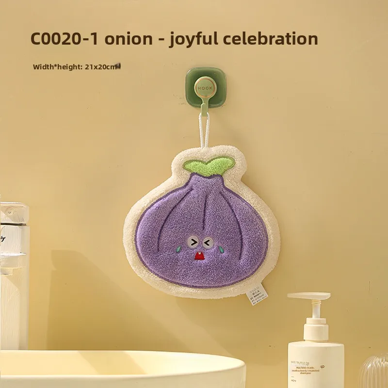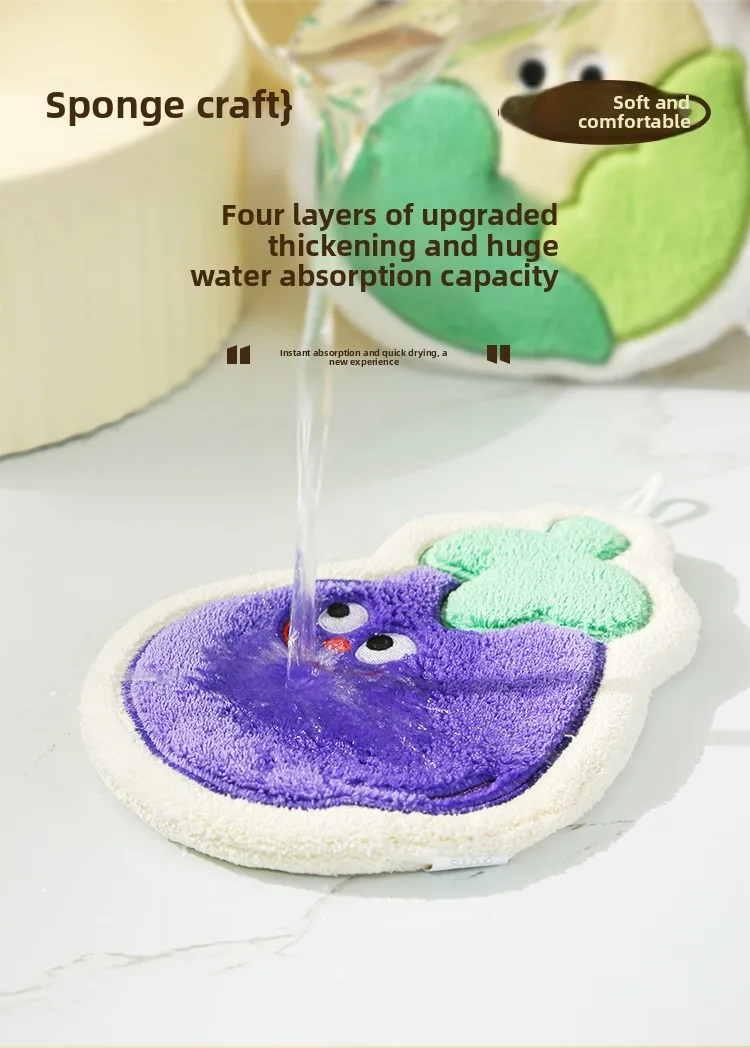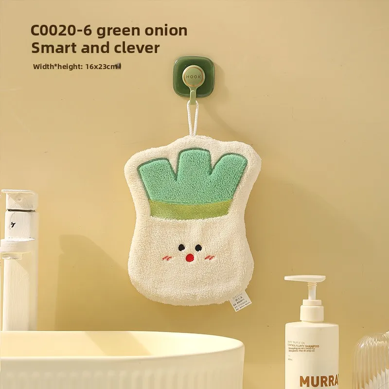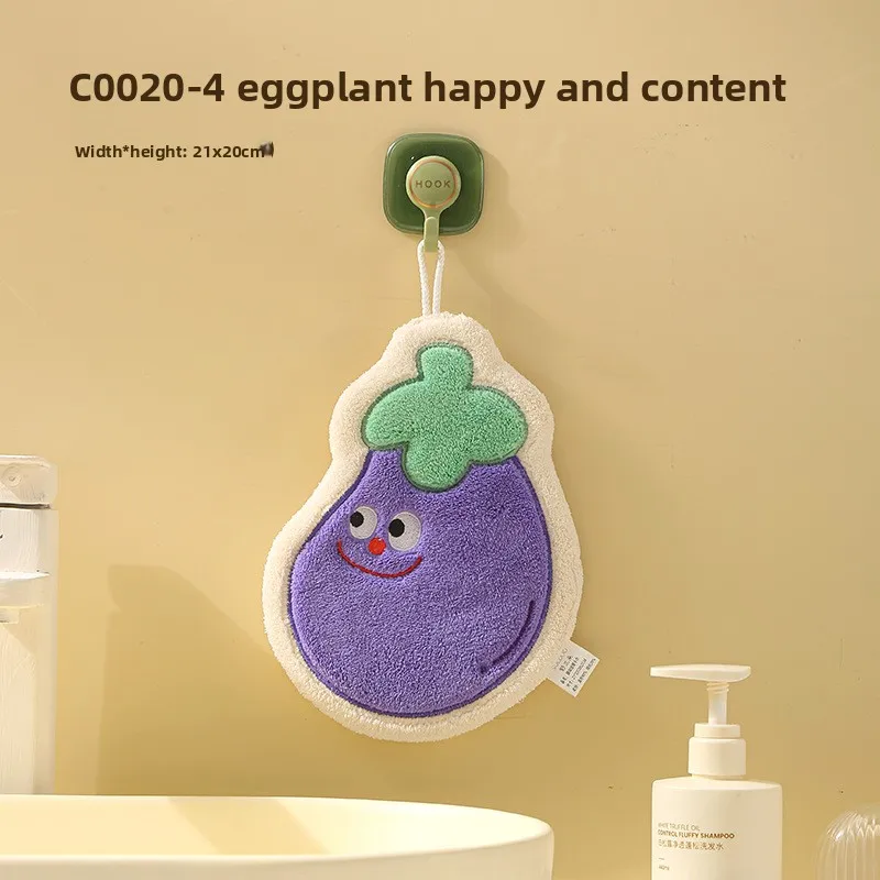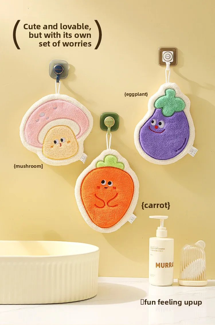 Toalla infantil colgante de verduras de dibujos animados: forro polar de coral grueso GSM alto, ultra suave, súper absorbente, ideal para el baño del bebé.