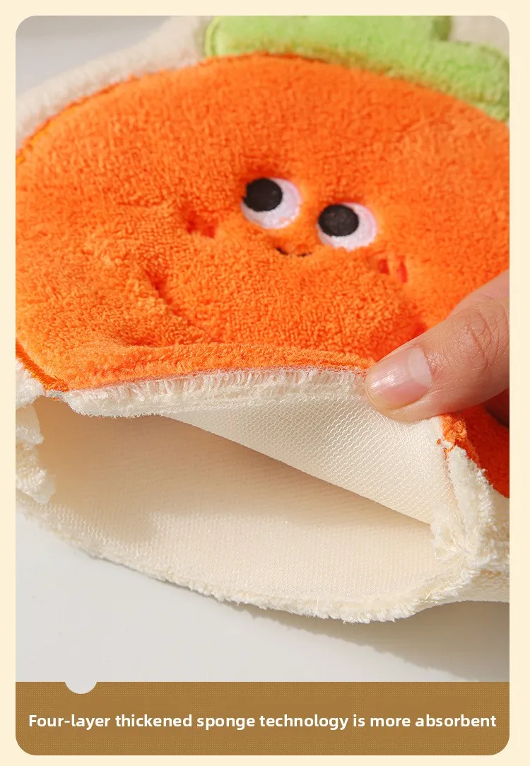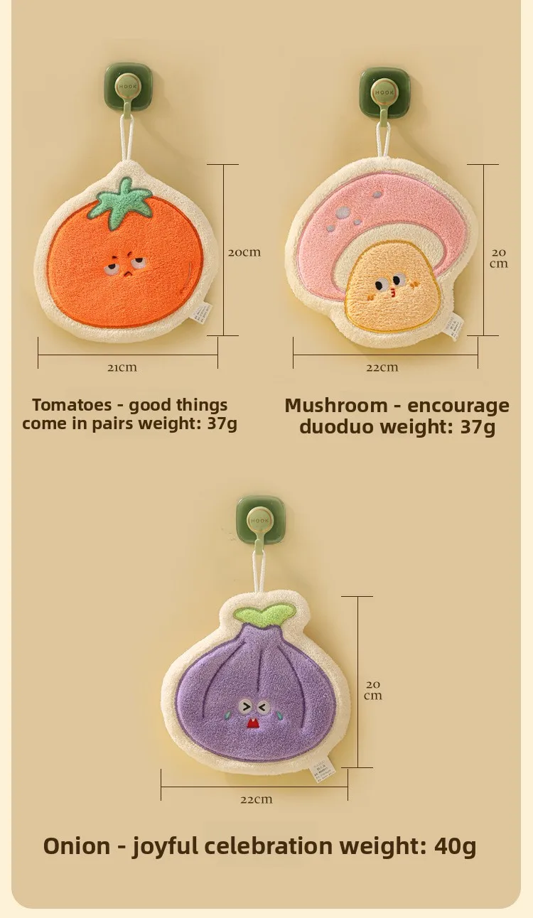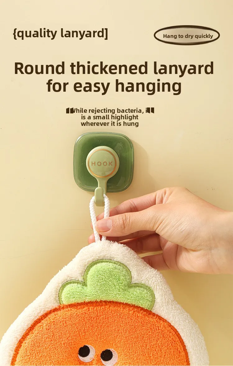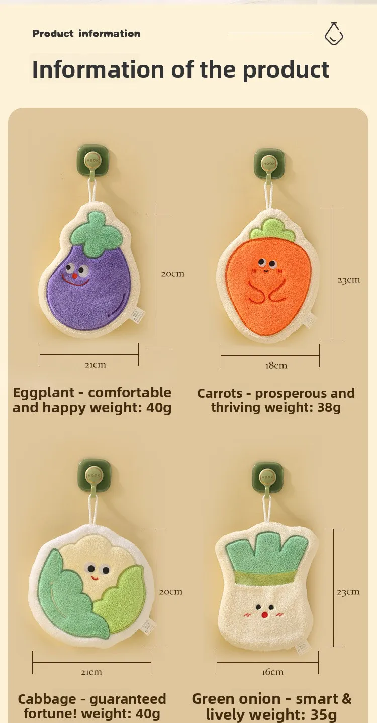 Toalla infantil colgante de verduras de dibujos animados: forro polar de coral grueso GSM alto, ultra suave, súper absorbente, ideal para el baño del bebé.