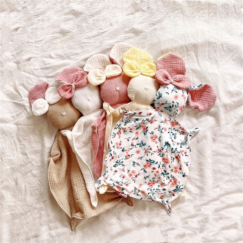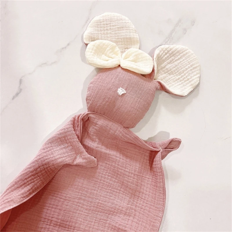 Toalla de muselina de algodón para bebé, bonito muñeco de ratón de peluche, toalla de apaciguar para dormir, manta para la cara, nuevo diseño