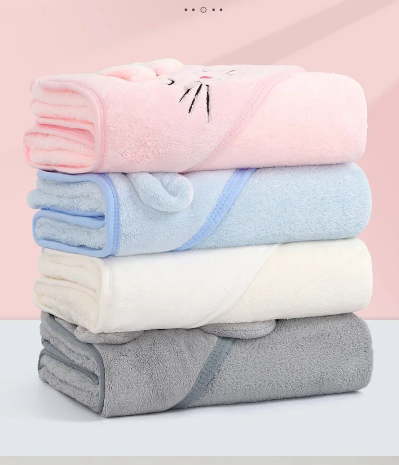 --Nombre del artículo: toallas con capucha para bebé. --Tamaño: 80 cm * 80 cm /31,5'' * 31,5'' (largo x ancho) --Color: rosa, azul, blanco, gris. --Material: forro polar de coral. --Estaciones adecuadas: primavera, invierno, otoño, verano. El paquete incluye: 1 ud. x manta
