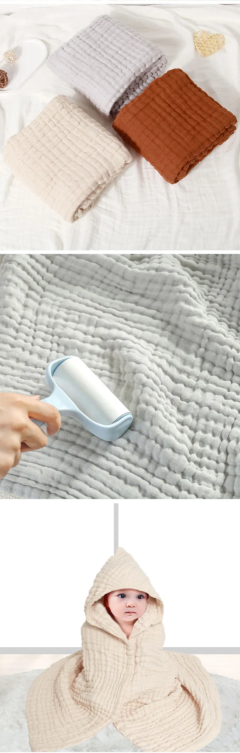 Las toallas de baño para niños con capucha del bebé pueden usar albornoces 6 capas seersucker capa de baño para bebé colcha para recién nacido