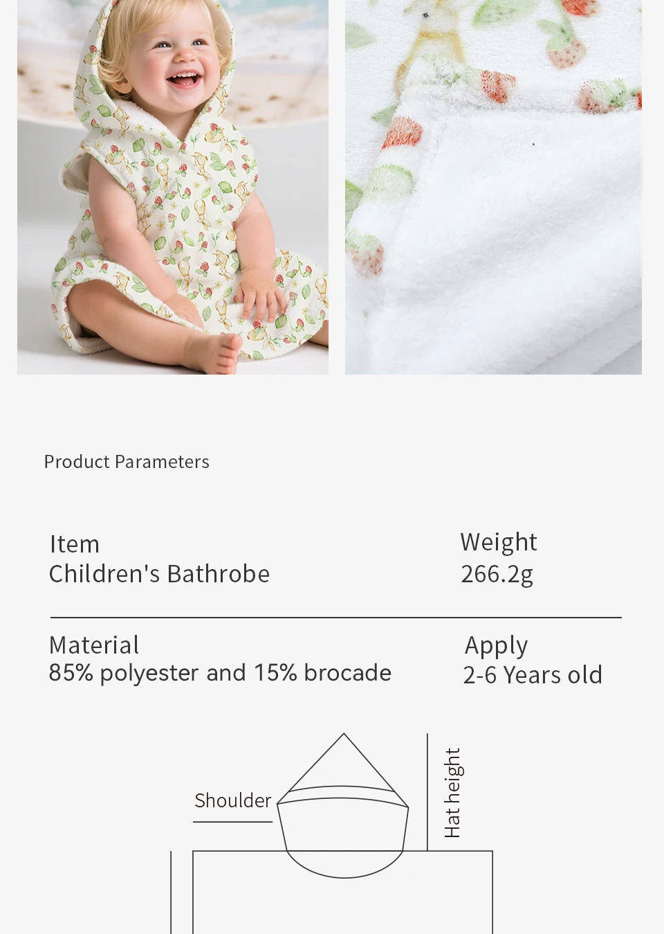 Confeccionada con materiales suaves de primera calidad, esta bata de baño para bebé garantiza la máxima comodidad para su pequeño después del baño.