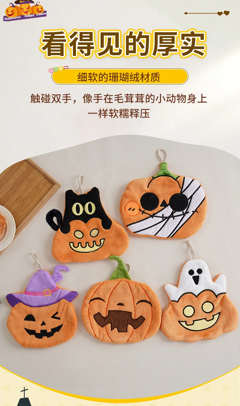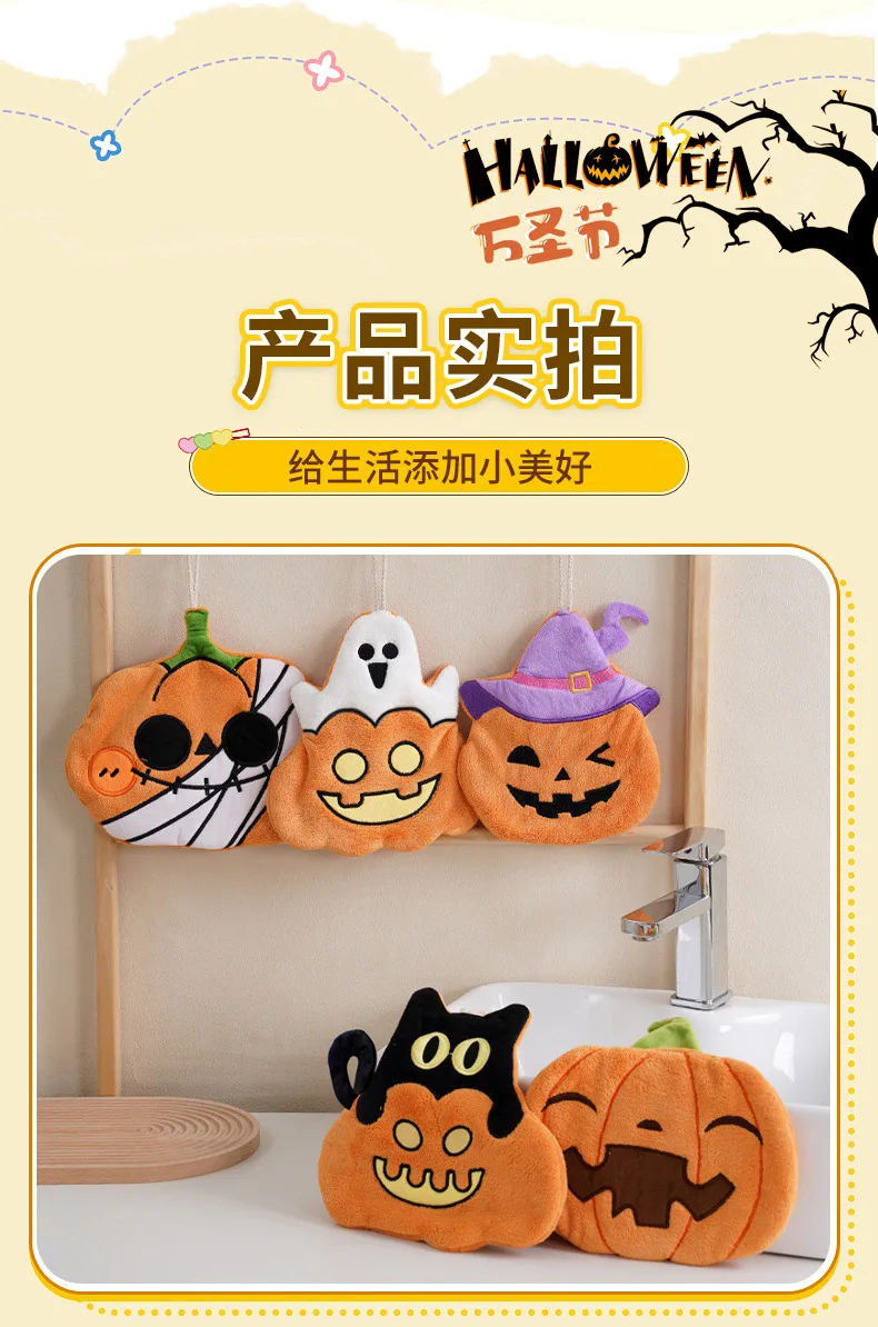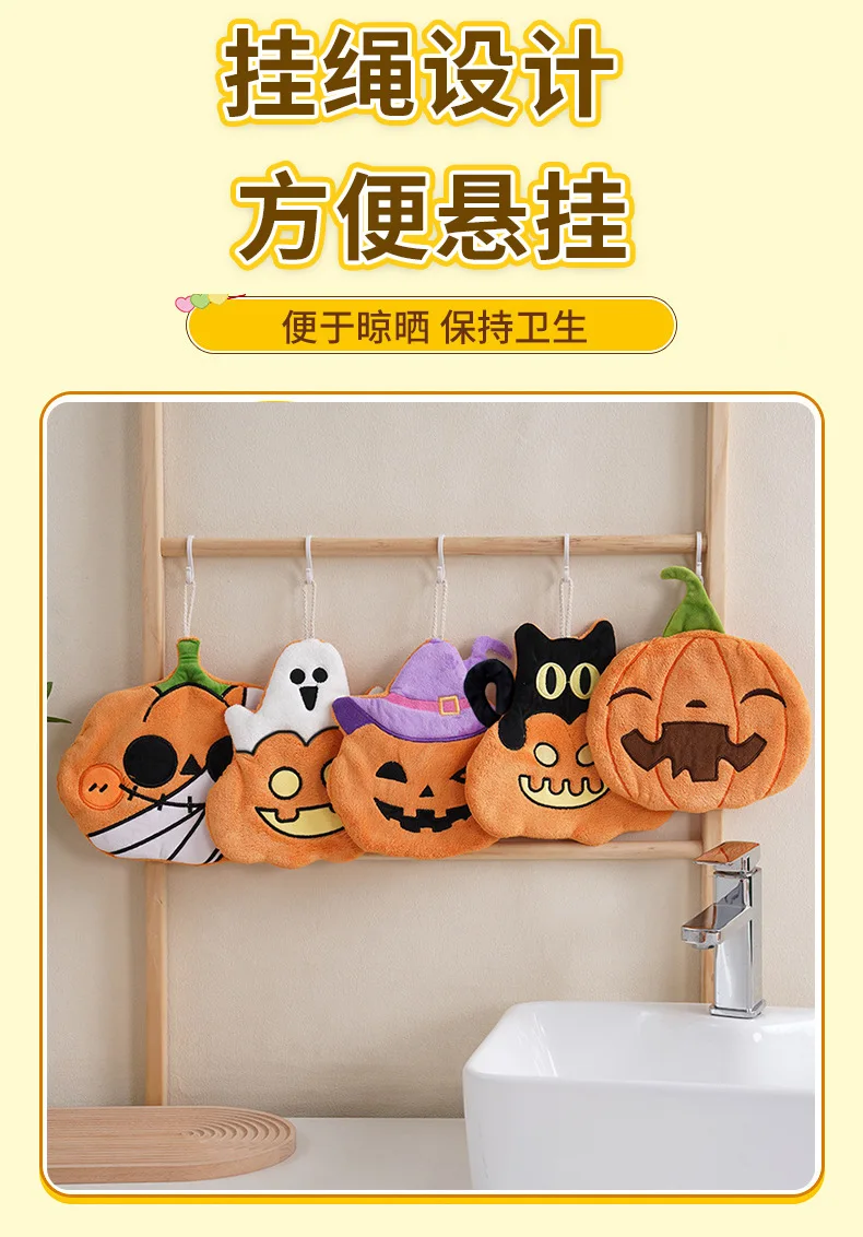 Toallas de Mano para Niños con Diseño de Calabaza de Halloween, de Terciopelo Coral, Toallas Colgantes para Cocina, Baño, Productos para el Baño y la Ducha