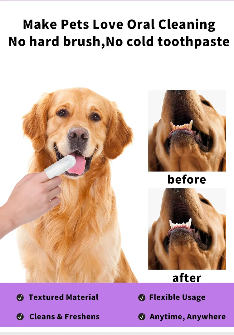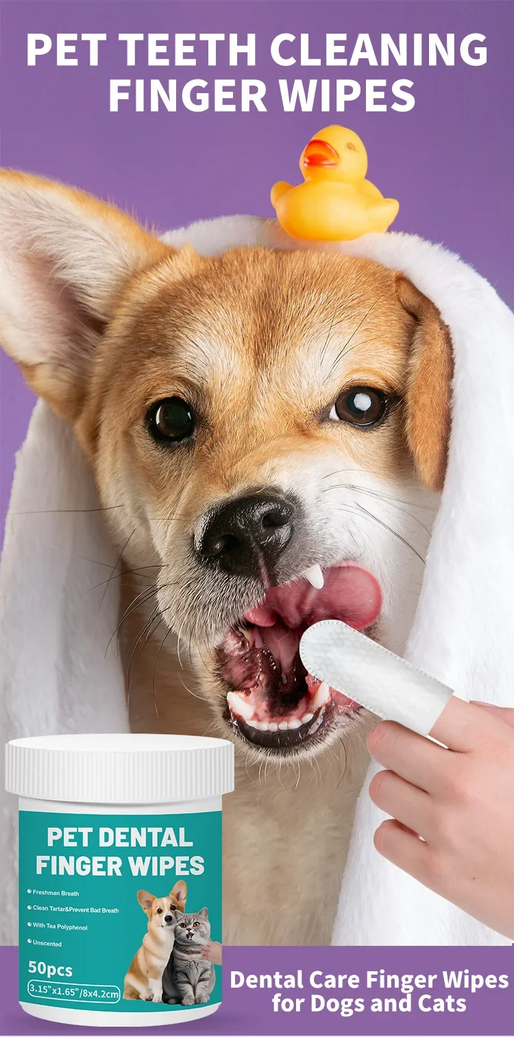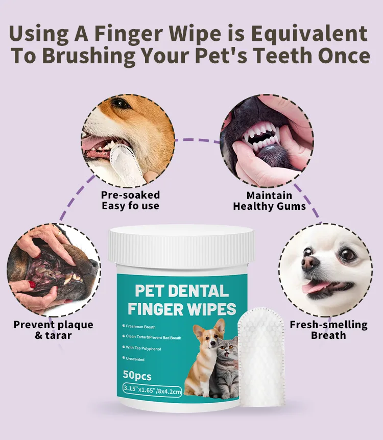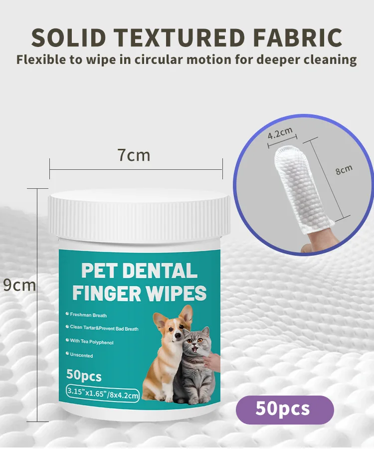 Toallitas dentales para dedos para perros y gatos, Control de placa, limpieza de dientes con ambientador portátil para uso en viajes en casa, suministros para mascotas, 50 Uds.