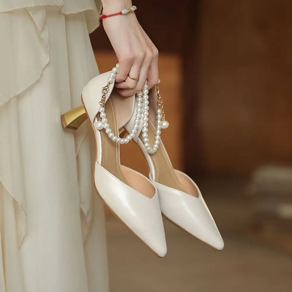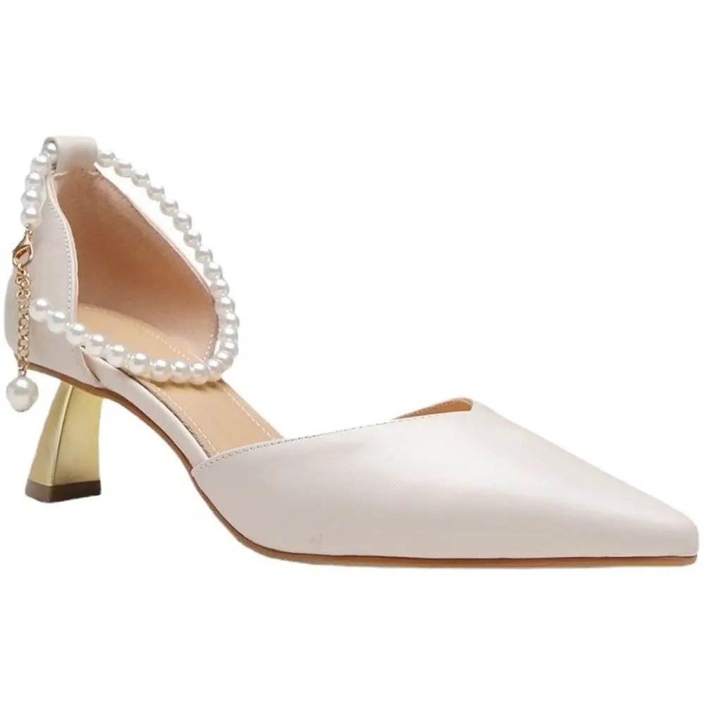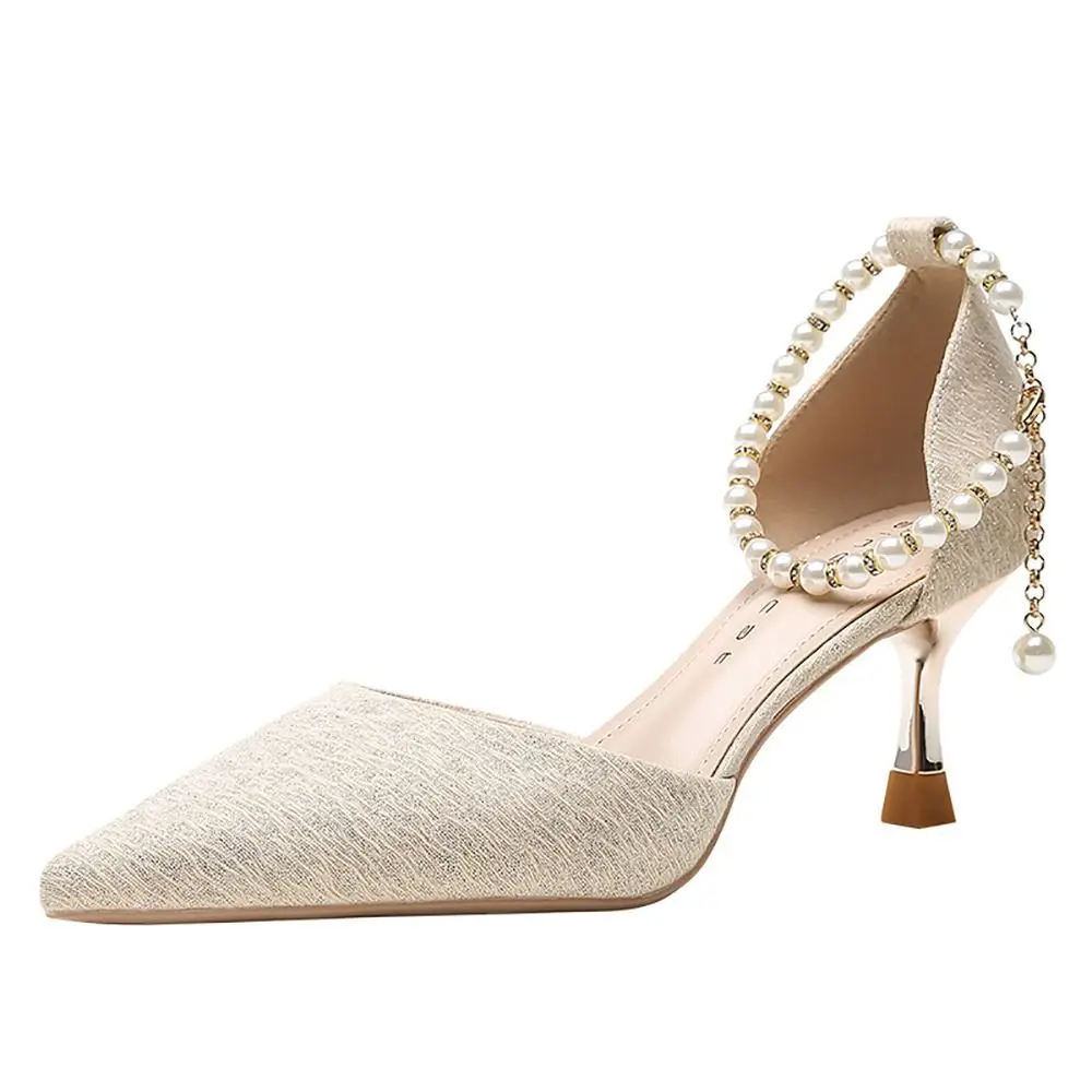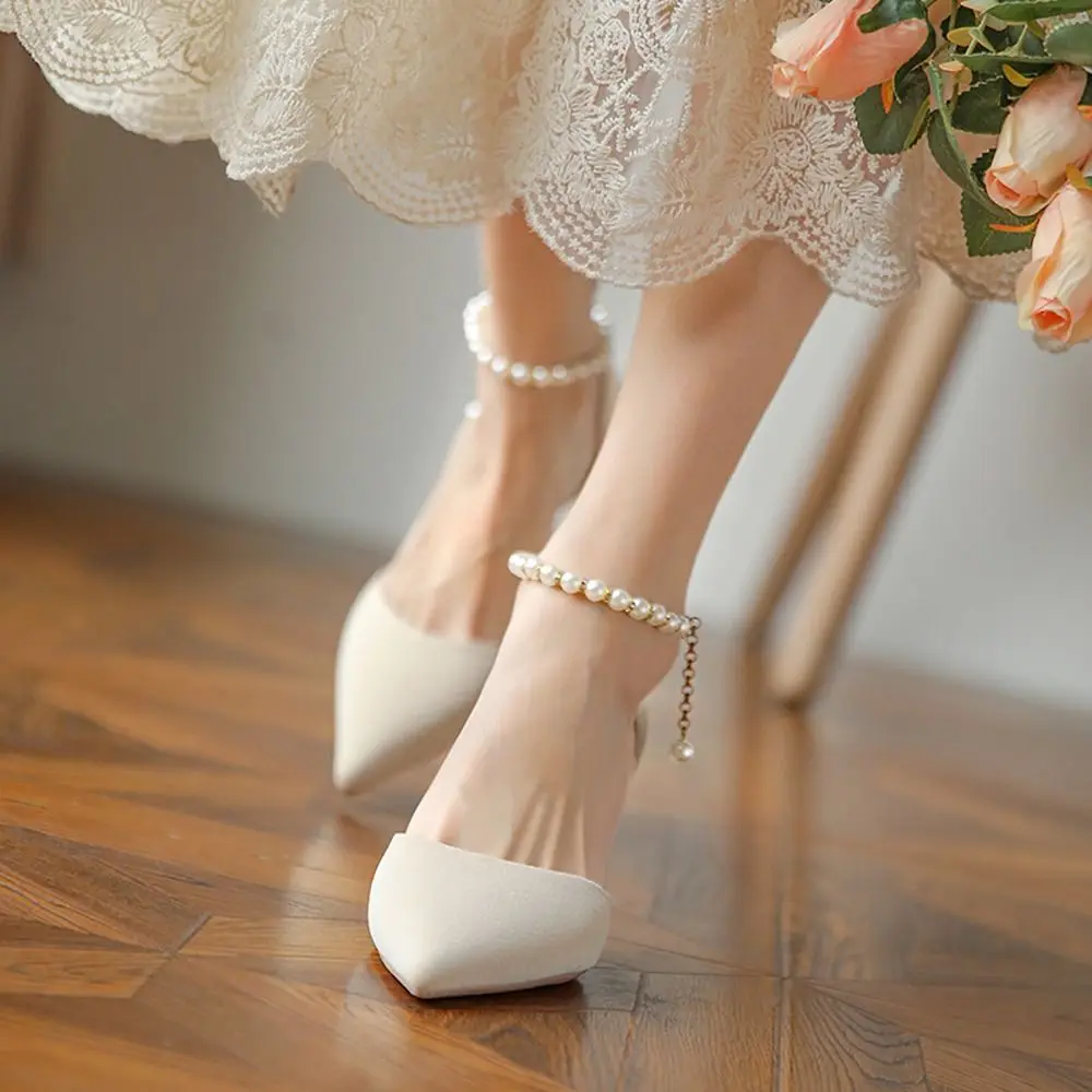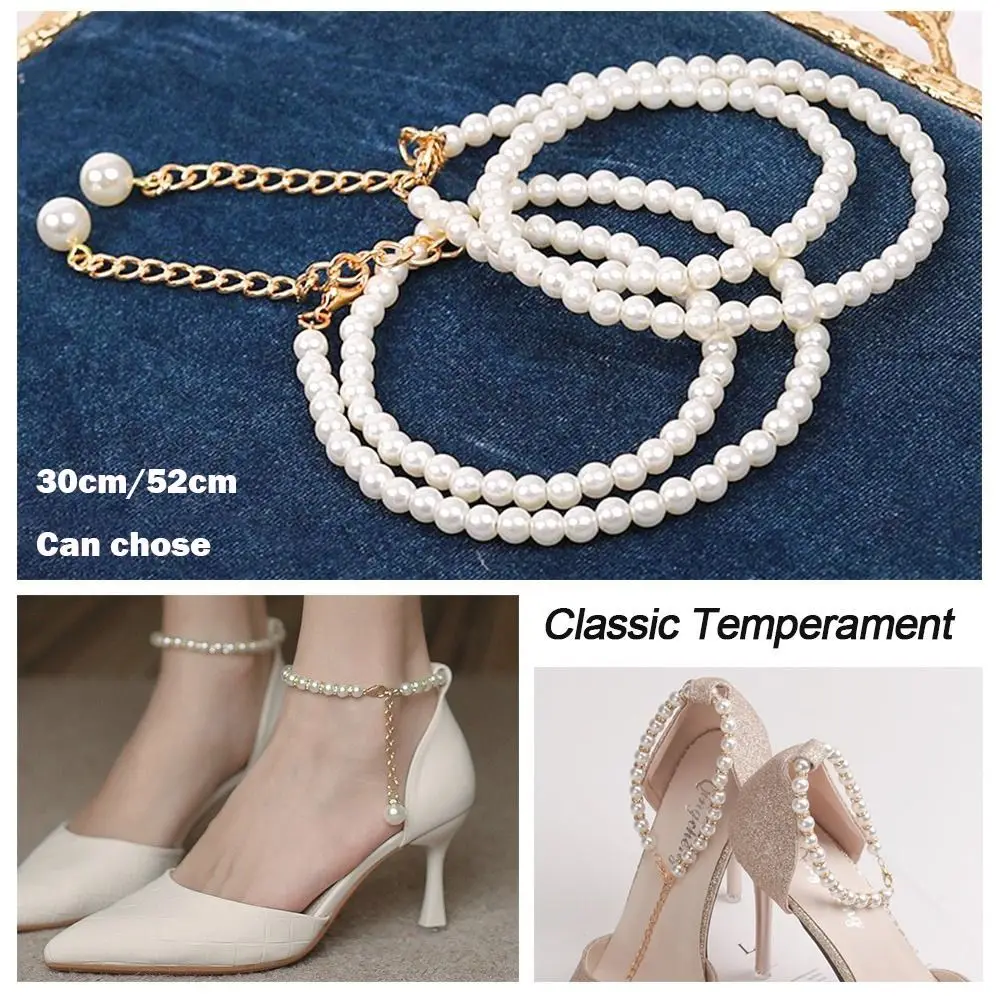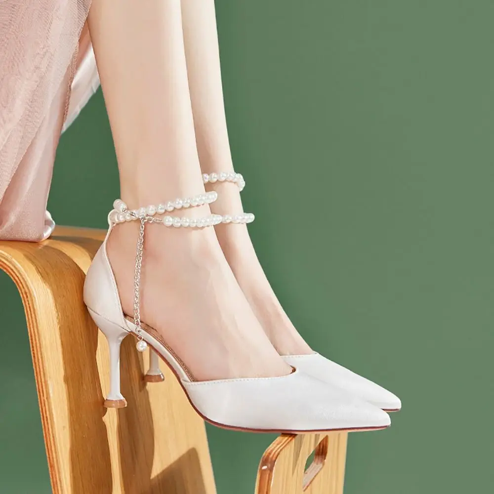 Comprar Tobillo sosteniendo zapatos de tacón alto antideslizantes correas blanco tacones altos ajustables cadena tacones de perlas banda
