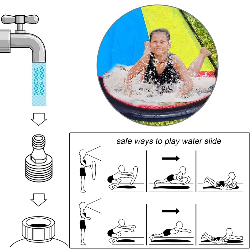 Product features: single-sided spray water does not need to be inflated; connected to the hose, the water will be constantly sprayed, it is recommended to use on the grass.