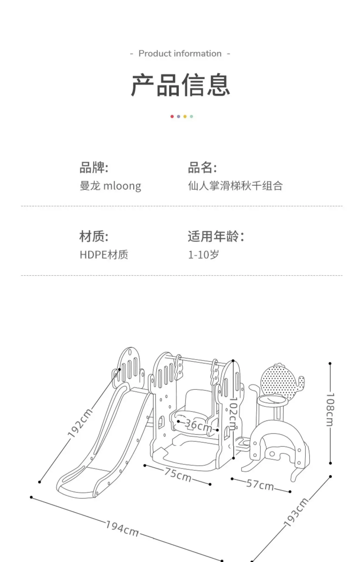 Comprar Tobogán de bebé para interiores, combinación de columpio para el hogar, juguete de aumento, tobogán de Cactus pequeño para niños