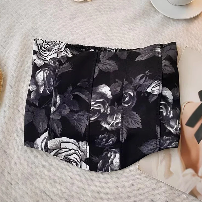 Comprar Top corto Sexy con estampado de flores para mujer, temperamento Irregular Retro con almohadilla para el pecho, Verano