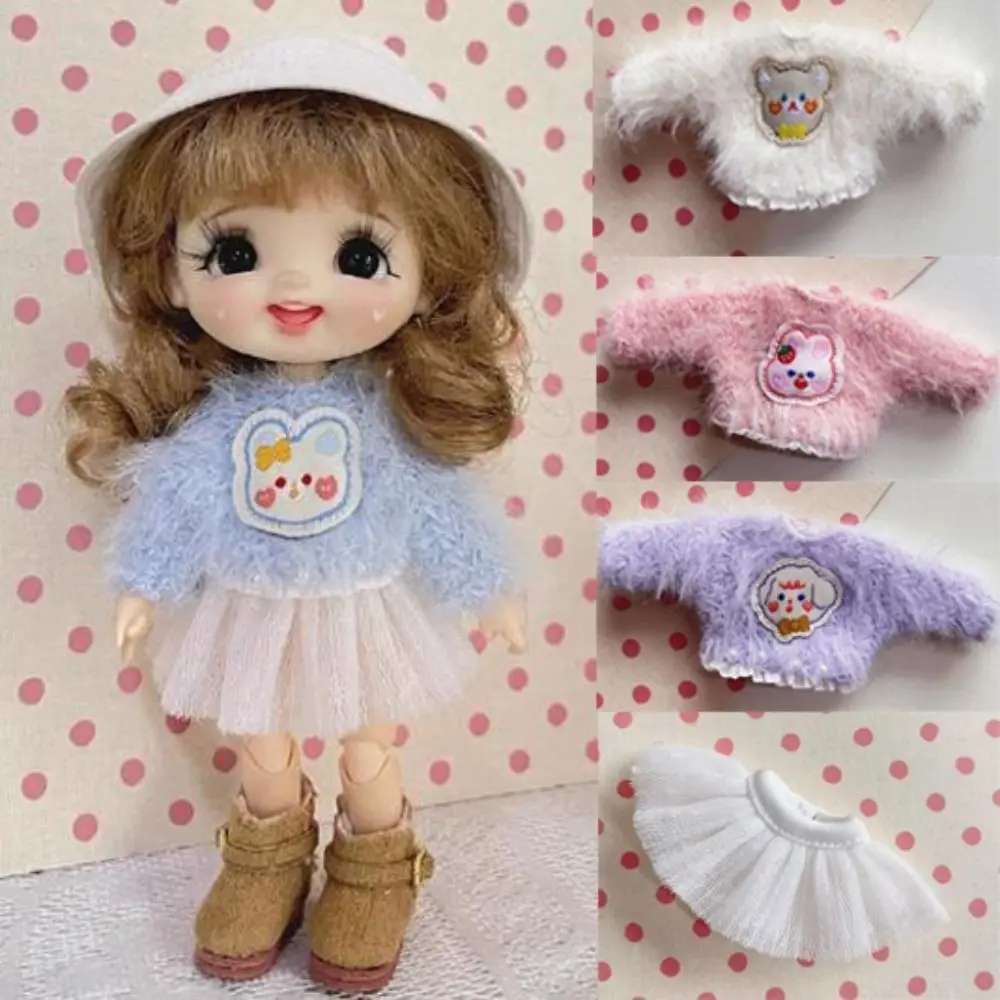 Comprar Tops de felpa a la moda, suéteres multicolores de dibujos animados para muñecas ob11 P9, falda de malla de princesa para accesorios de ropa para muñecas BJD 1/12