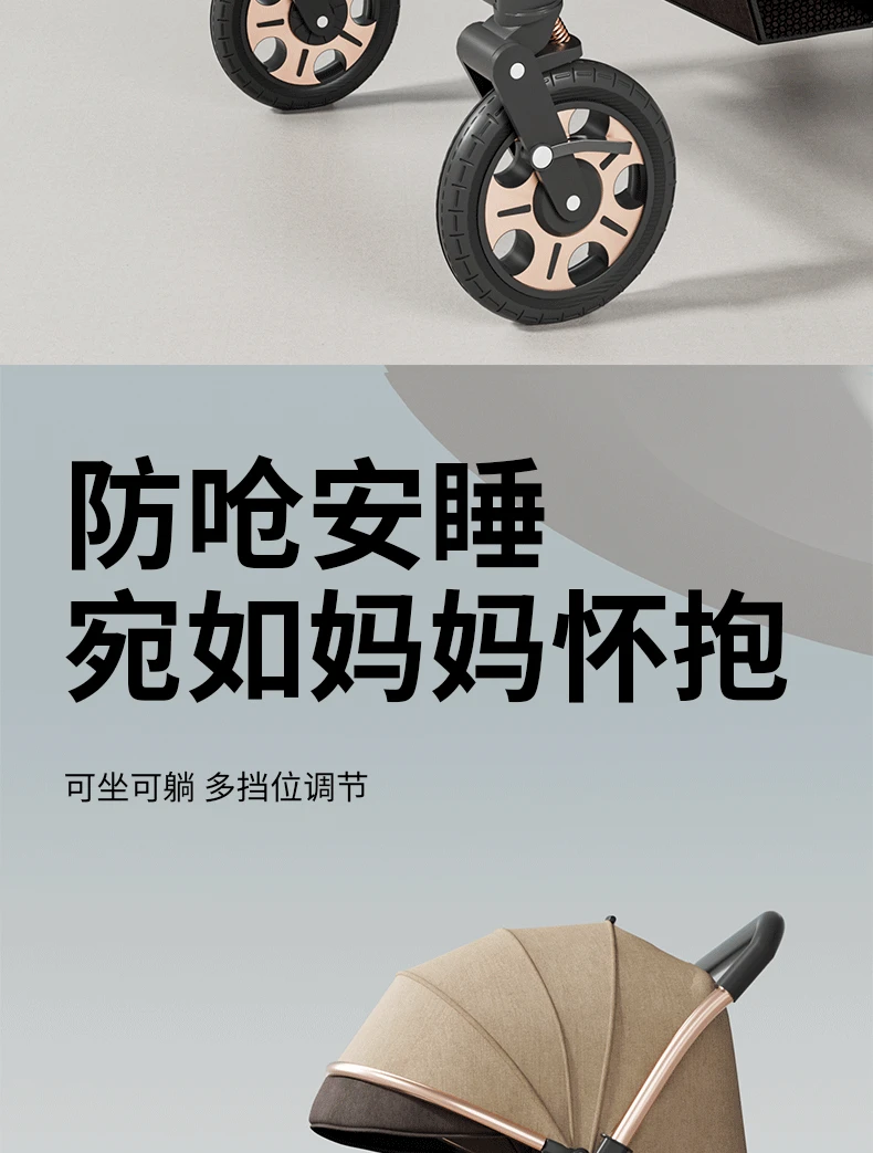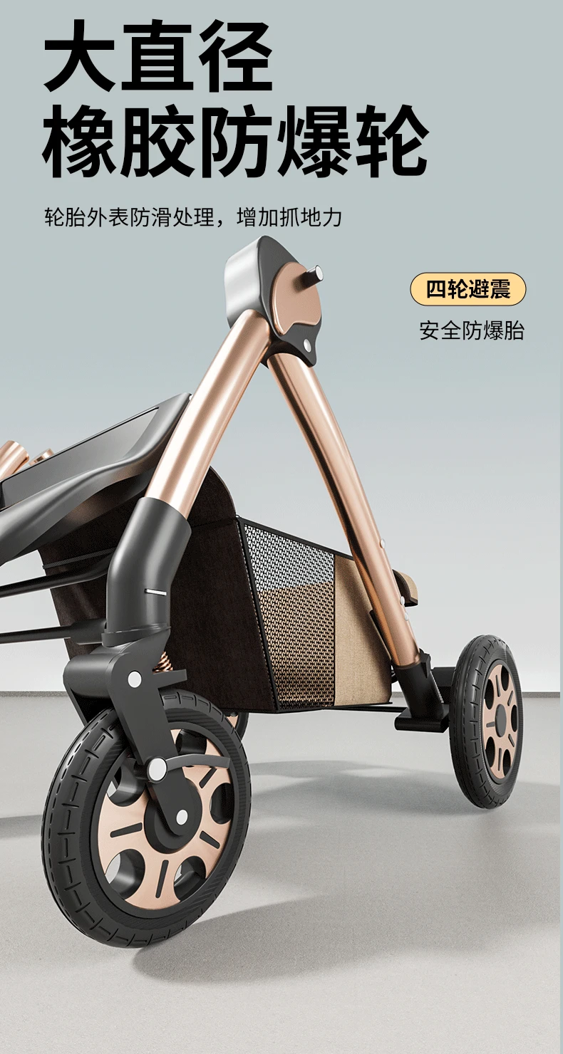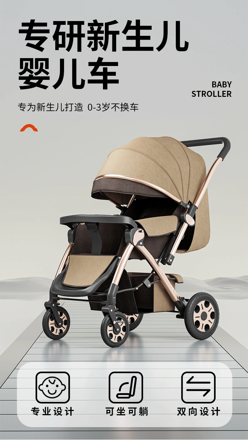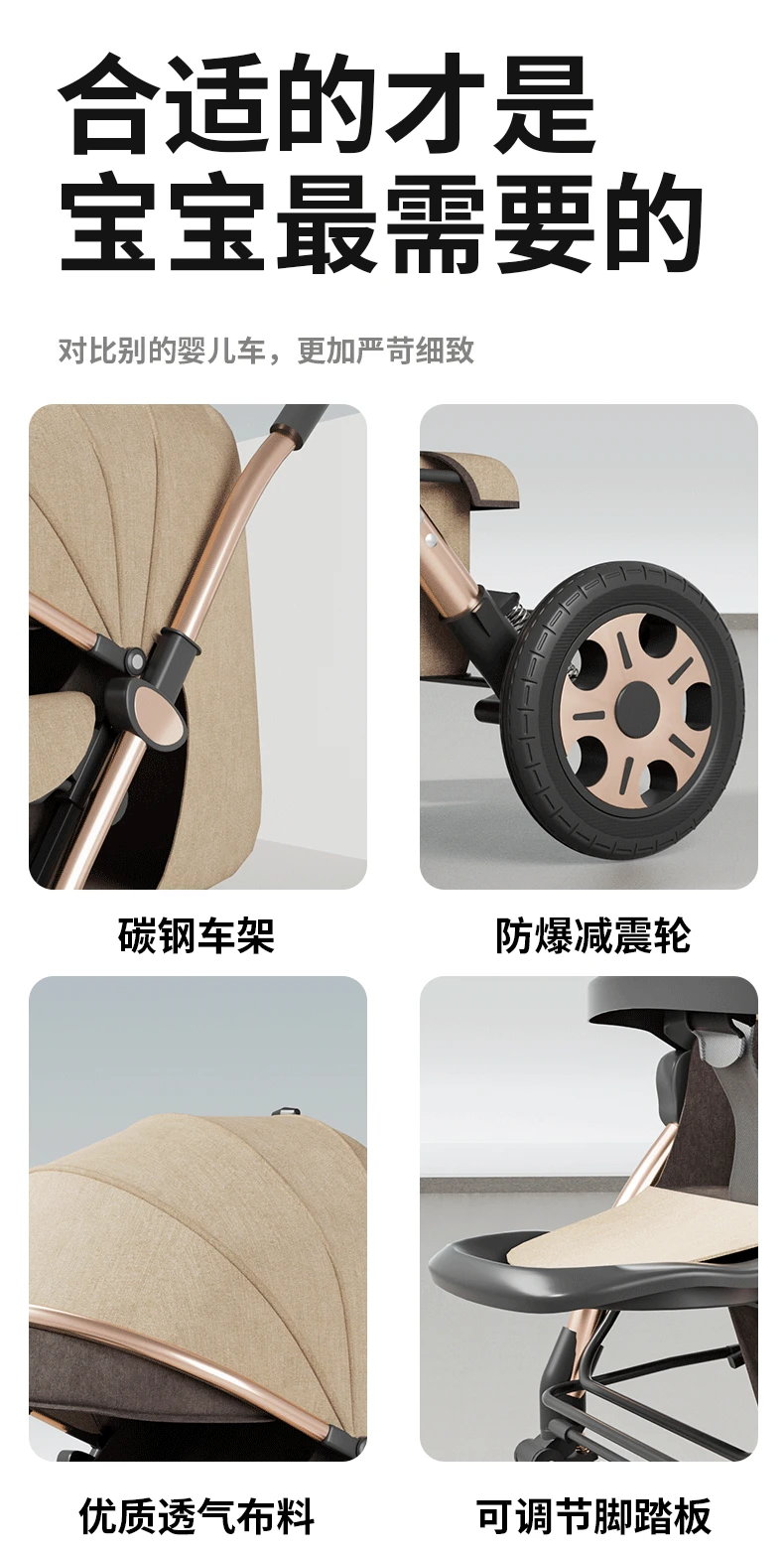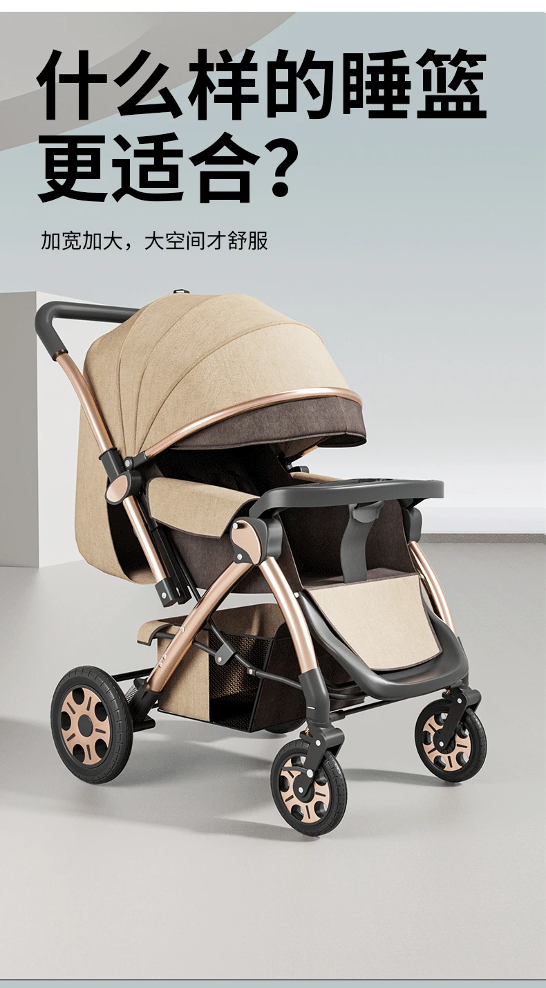 Torno de cochecito, asientos multifuncionales y tumbado, carrito portátil plegable para bebés de 0 a 4 años