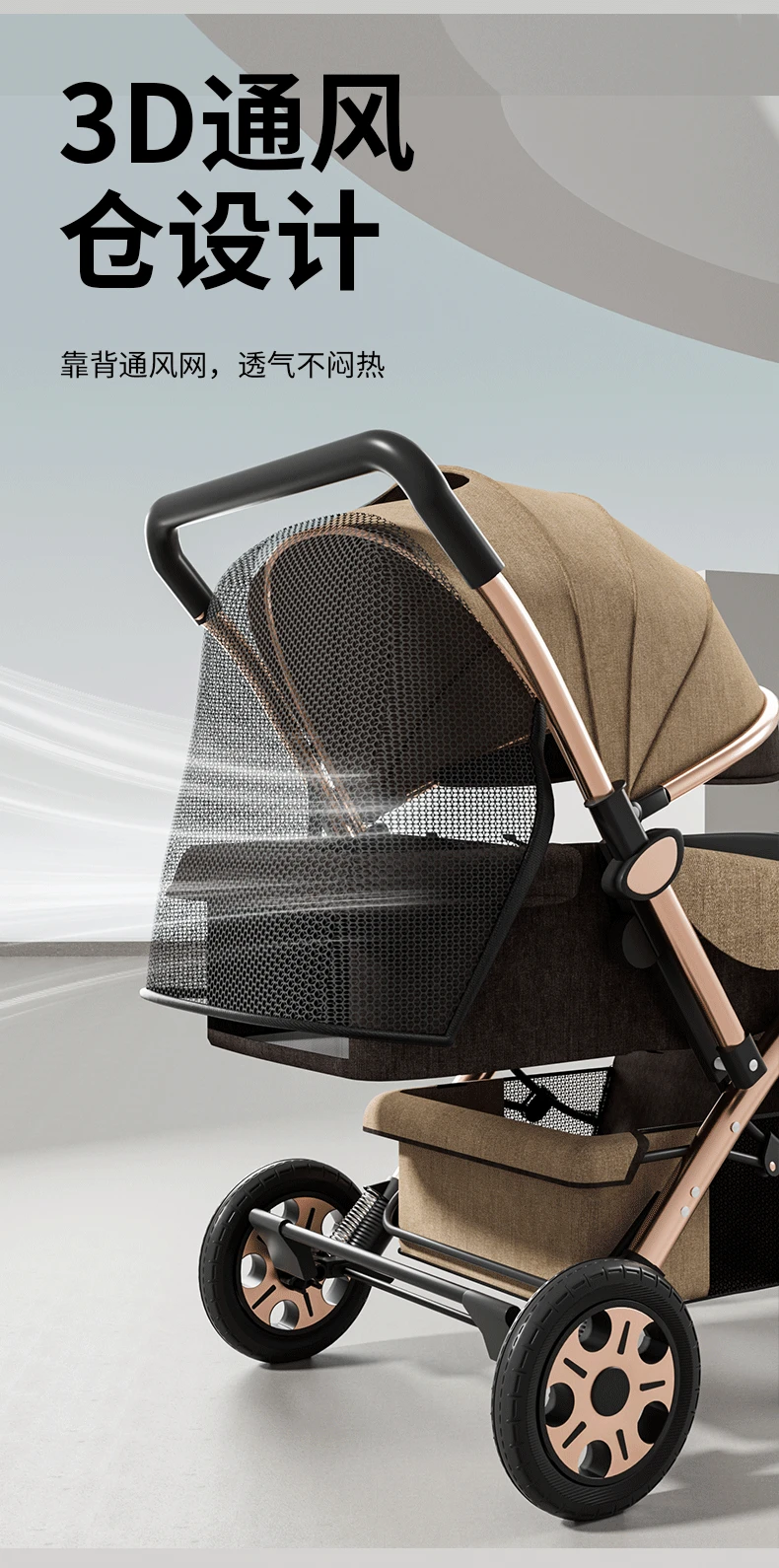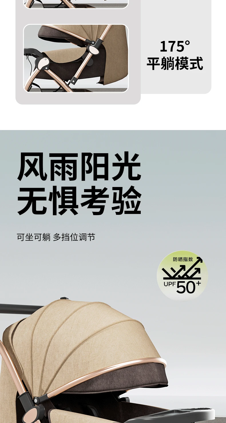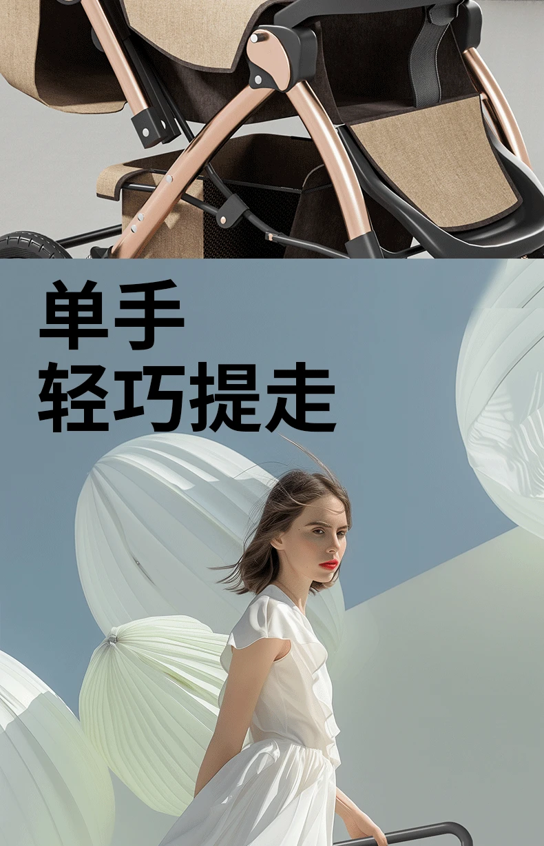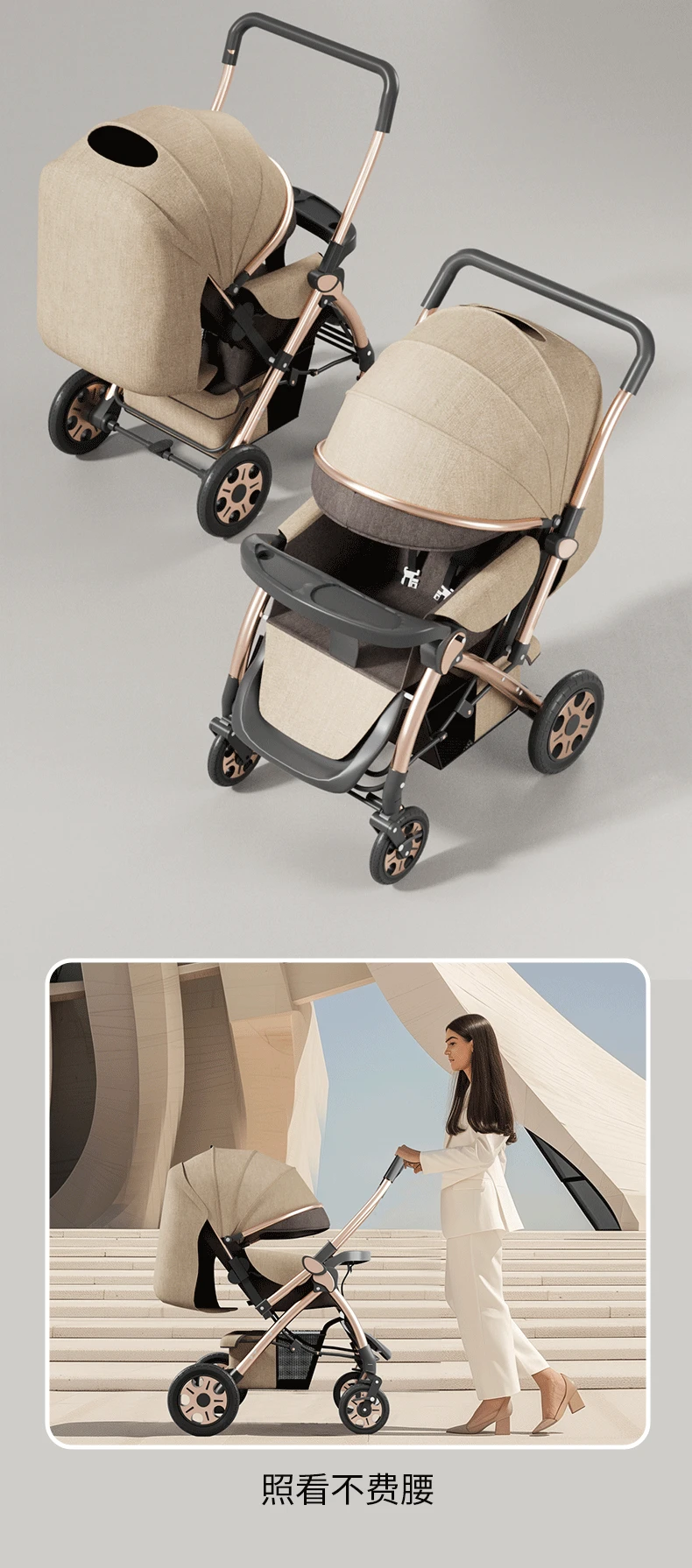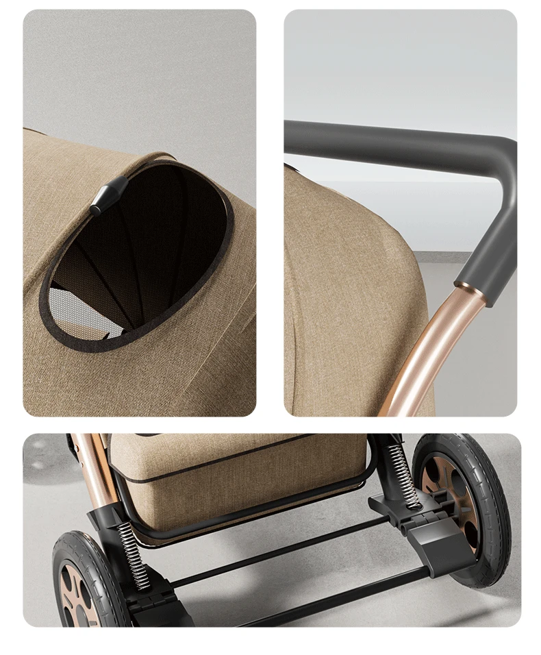 Torno de cochecito, asientos multifuncionales y tumbado, carrito portátil plegable para bebés de 0 a 4 años