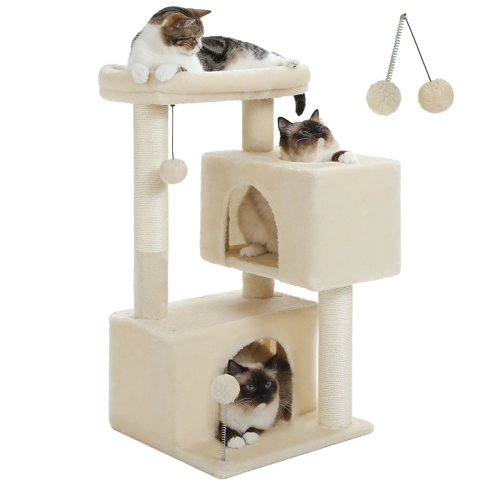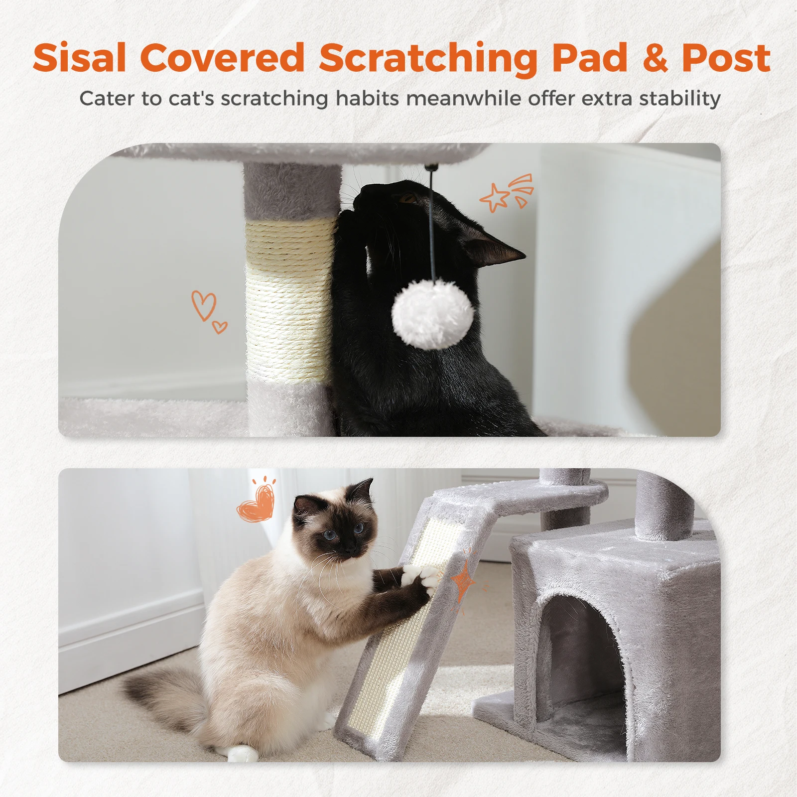 Sisal Scratching Ramp: Cat tree for small cats features a sisal scratching ramp, perfect for satisfying cat's scratching instincts and helping to keep their claws healthy and sharp, while also add stability to the cat tower tree structure.