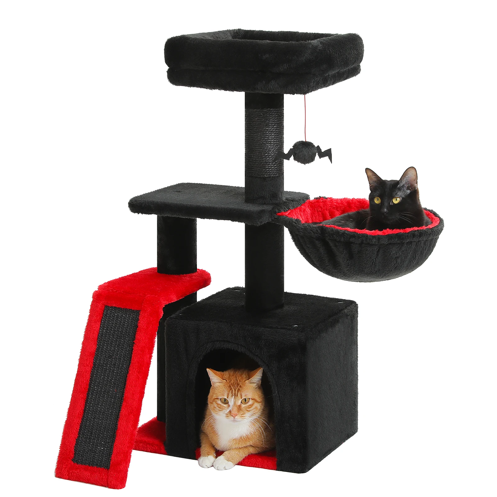 4-in-One Design: This small cat tree combines a sisal scratching ramp, cozy hammock, and cat condo with top perch in one, providing your feline friend with a fun and functional space to play, rest, and relax.