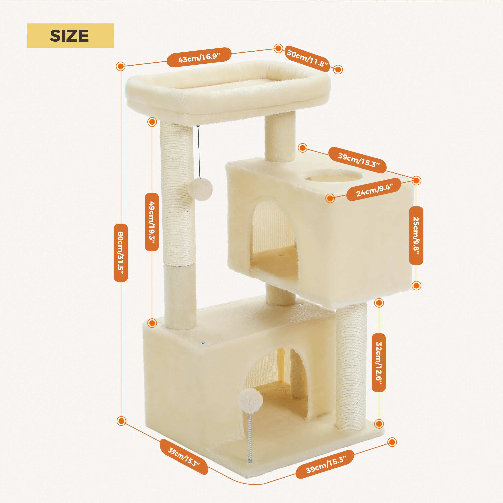 This 82cm Cat Tree Tower is the perfect solution for indoor cats, offering a blend of entertainment, comfort, and functionality, ensuring your furry companions have a space they'll love to call their own.